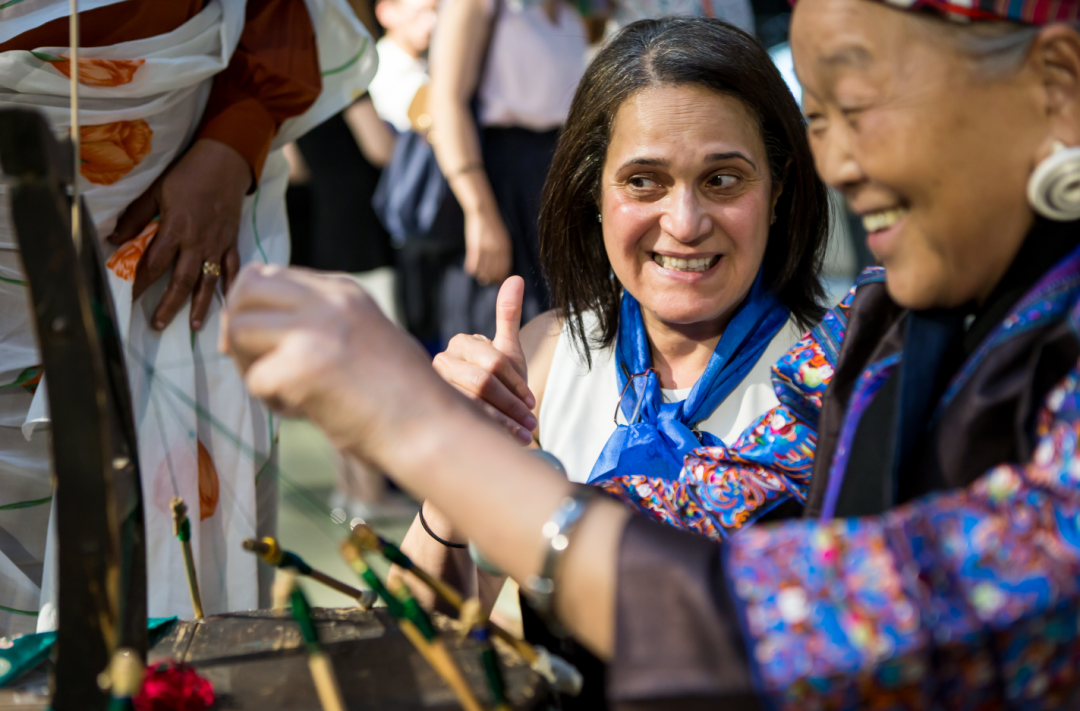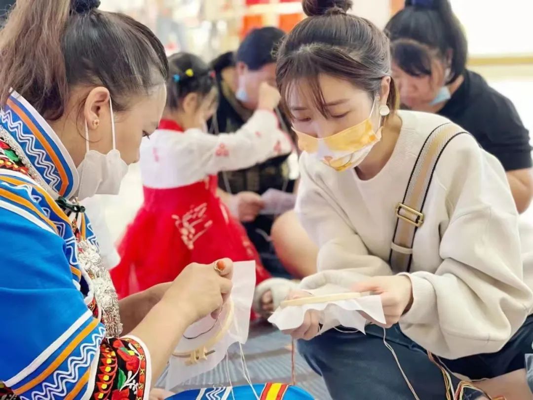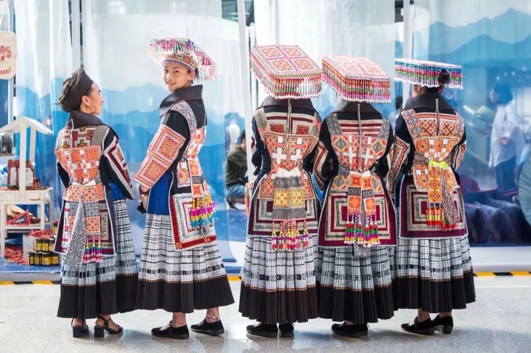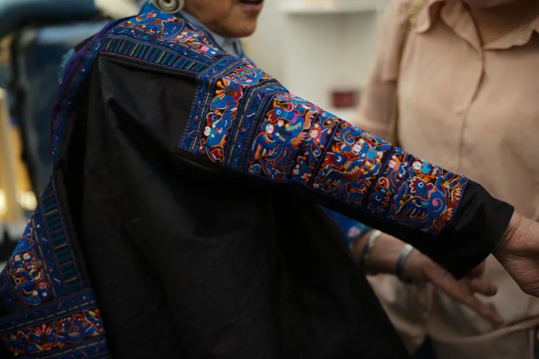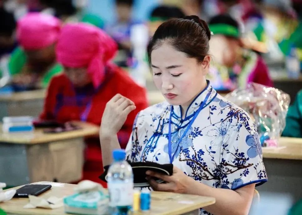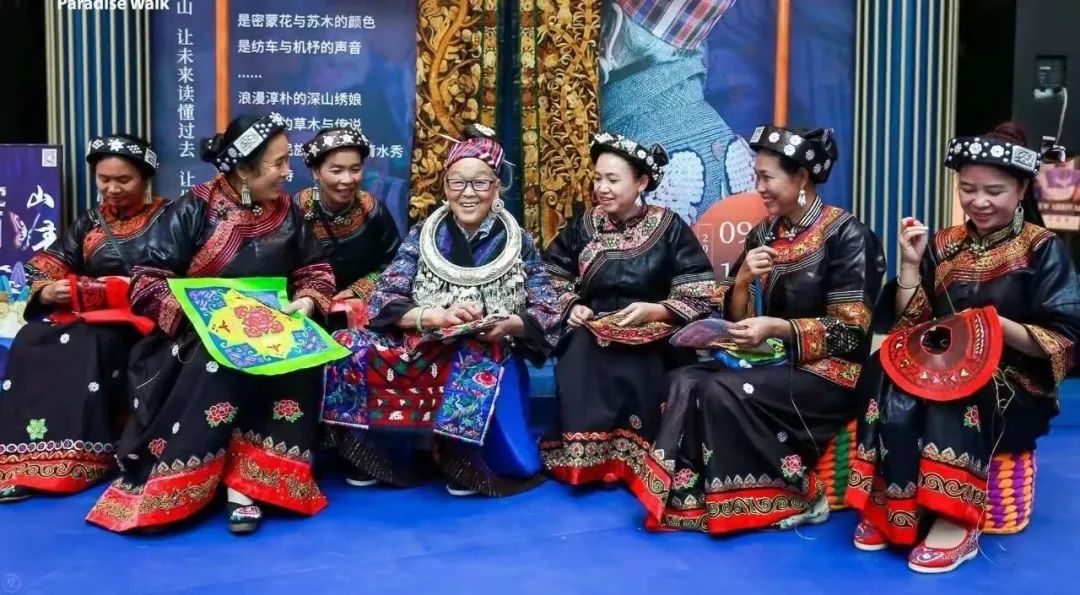 她们穿着少数民族的盛装,熟稔数十种绣法