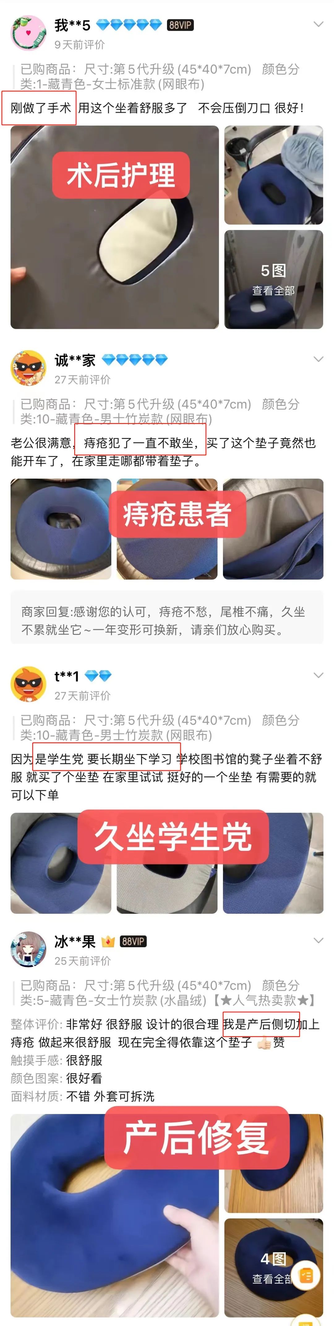 这款久坐不累的坐垫一经推出,就得到广大用户的喜爱,纷纷给出使用后的评价。