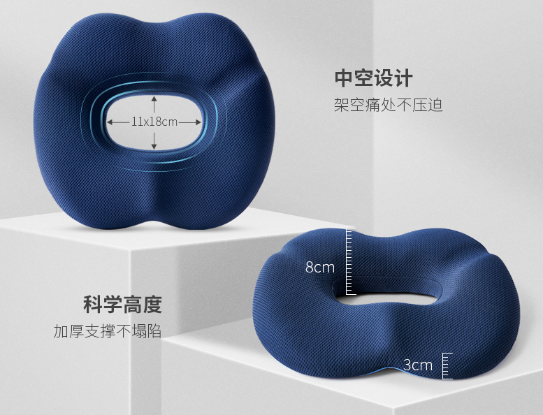 反复调整改进,终于研发出了这款佳奥元气护理坐垫,用以预防痔疮、褥疮和腰肌劳损