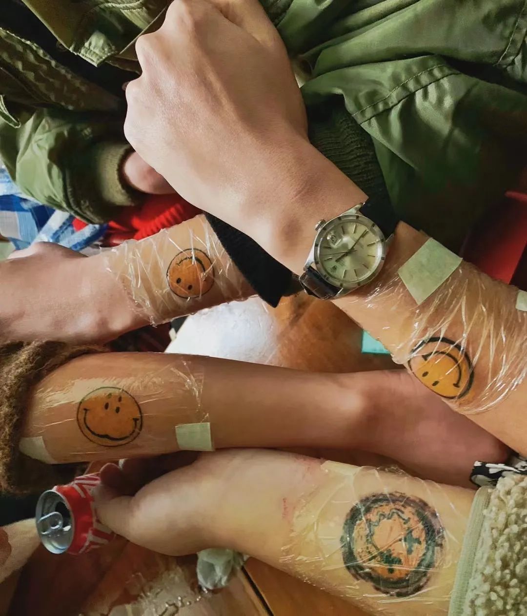 她喜欢笑脸,所以家里有不少笑脸元素,还和3个朋友一起把笑脸文在了身上。