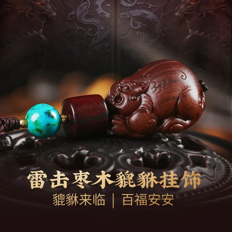 用雷击枣木,雕刻的貔貅,勾勒出吉祥纹、寿纹,代表吉祥如意,福寿安康。随身携带,在吸引财富的同时,也可以守护平安,让你顺遂度过每一天。