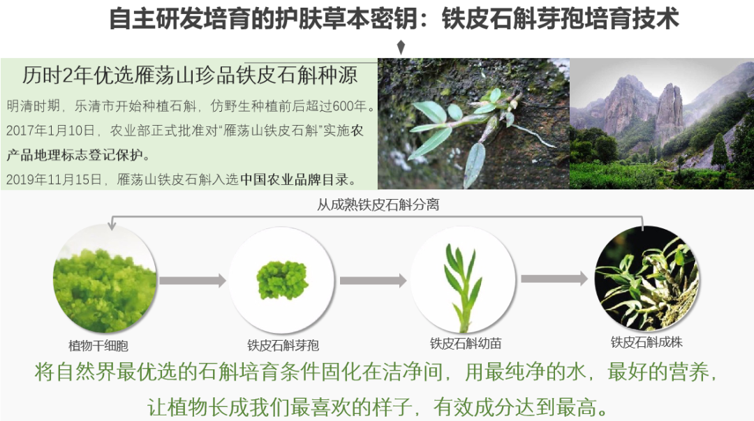 一瓶0.5g的芽孢相当于几百个嫩芽,长大之后能发育成几百条的石斛枝条,而我们在它最浓缩的时候就用冻干工艺锁住有效成分了。