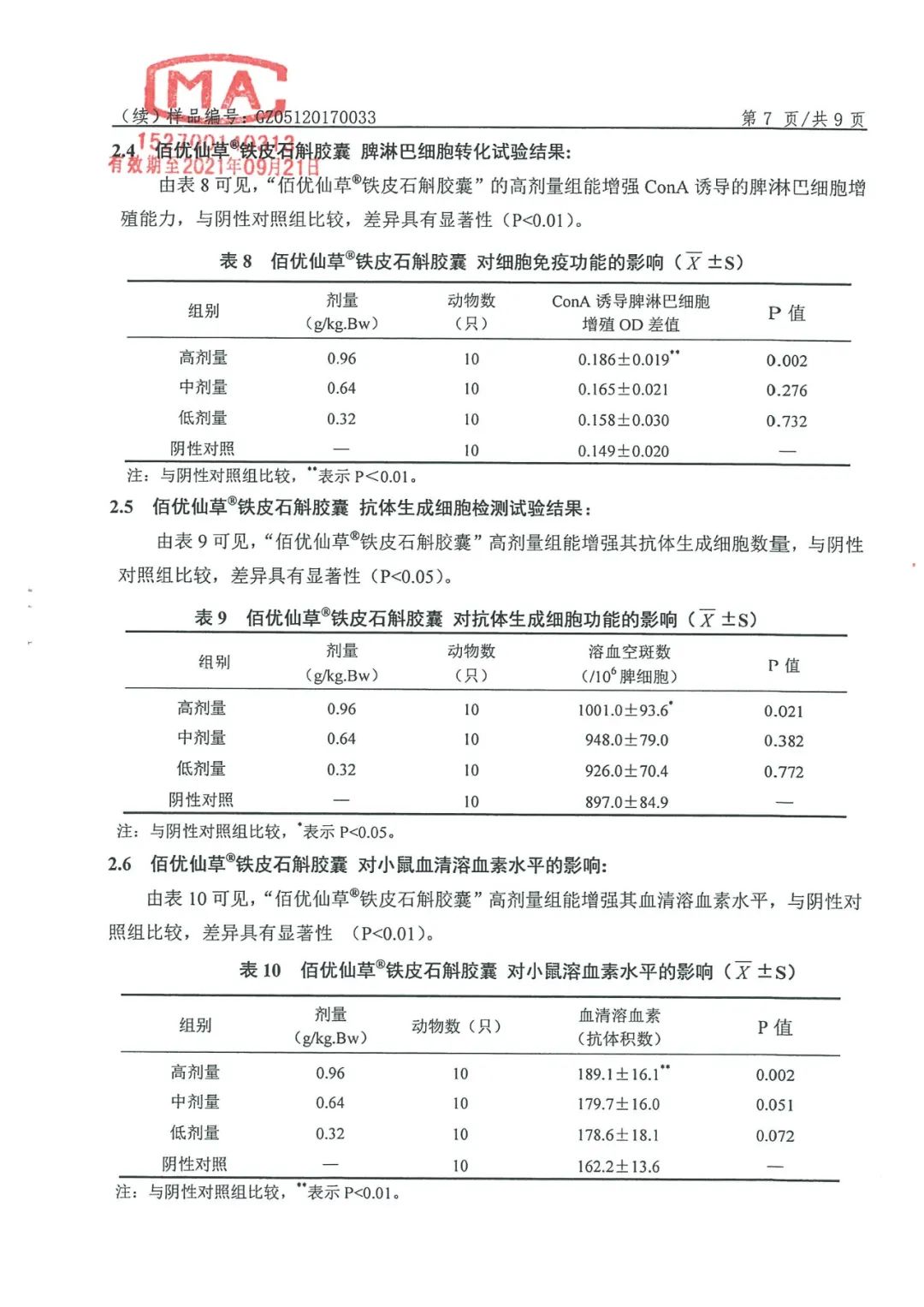 关于石斛芽孢的一些实验数据和检测报告(部分):