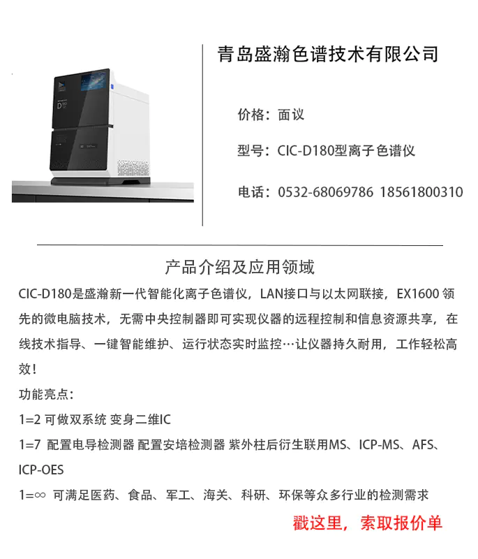 青岛盛瀚色谱技术有限公司成立于2002年,专业从事离子色谱仪及其核心部件的研发、生产、销售和技术服务,是一家通过ISO 9001质量管理体系认证及ISO 24001环境管理体系认证的高新技术企业。全部产品拥有自主知识产权,专利、软件著作权等近百项。