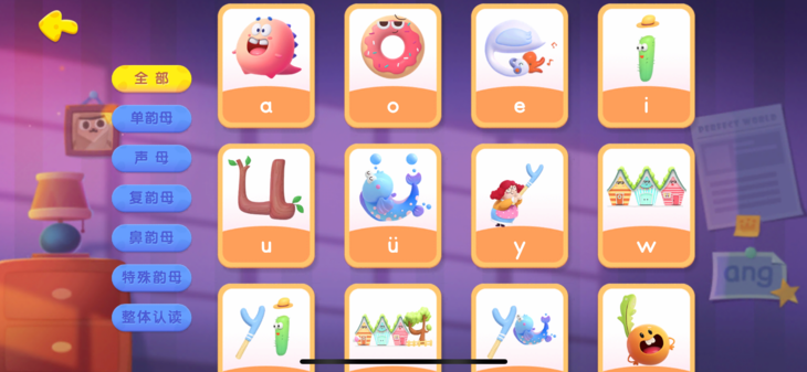 为了让孩子们精准发音,它采用业内先进的语音测评系统,帮助孩子有效的校正发音。在设定上,更是结合多种趣味场景,让孩子主动发声,爱上拼音!