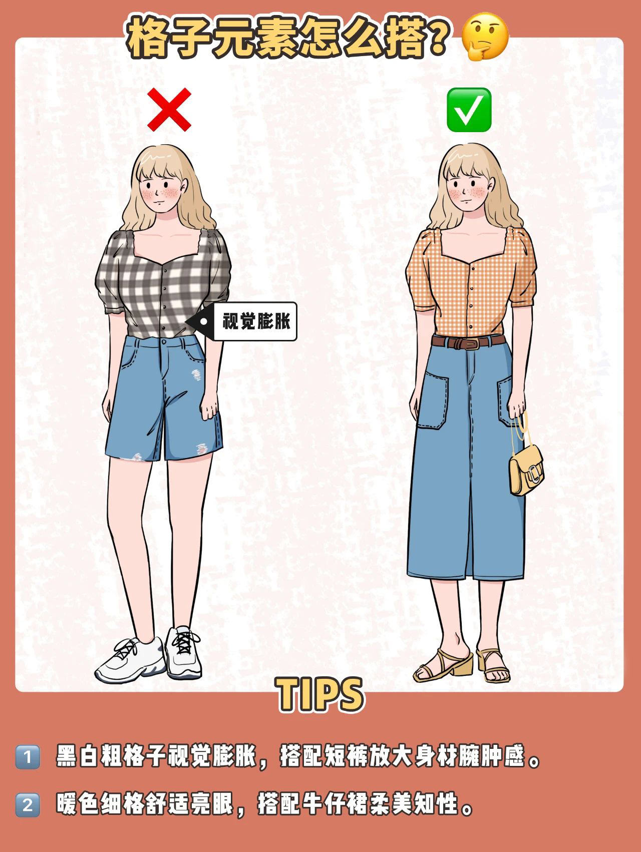 想要提升造型的明媚感,暖色细格是上上选!再配一条牛仔半裙,整个人瞬间变得柔美知性起来。