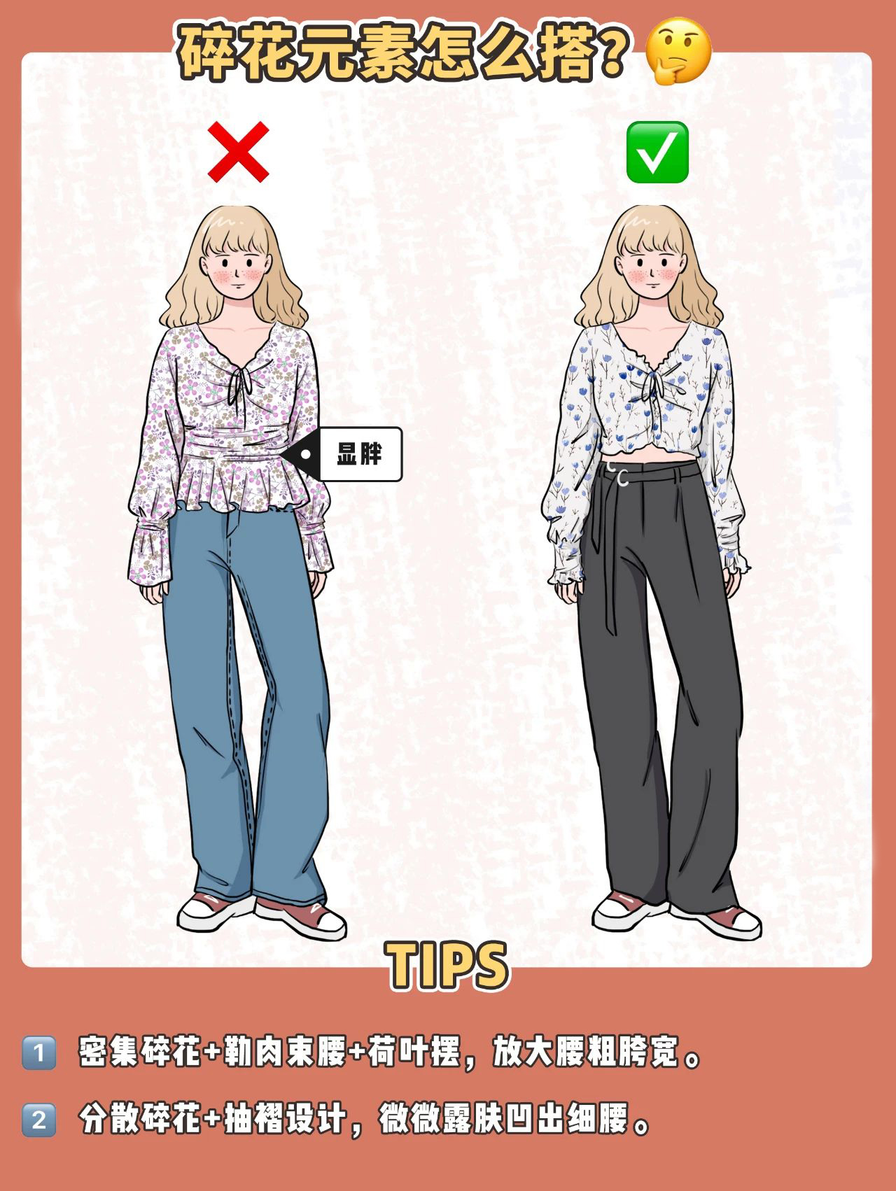 不少MM都喜欢宫廷风,热烈复杂的碎花+荷叶袖+荷叶摆+束腰,实际效果可不怎么样!妥妥暴露微胖星人膀粗腰圆大胯宽的劣势。