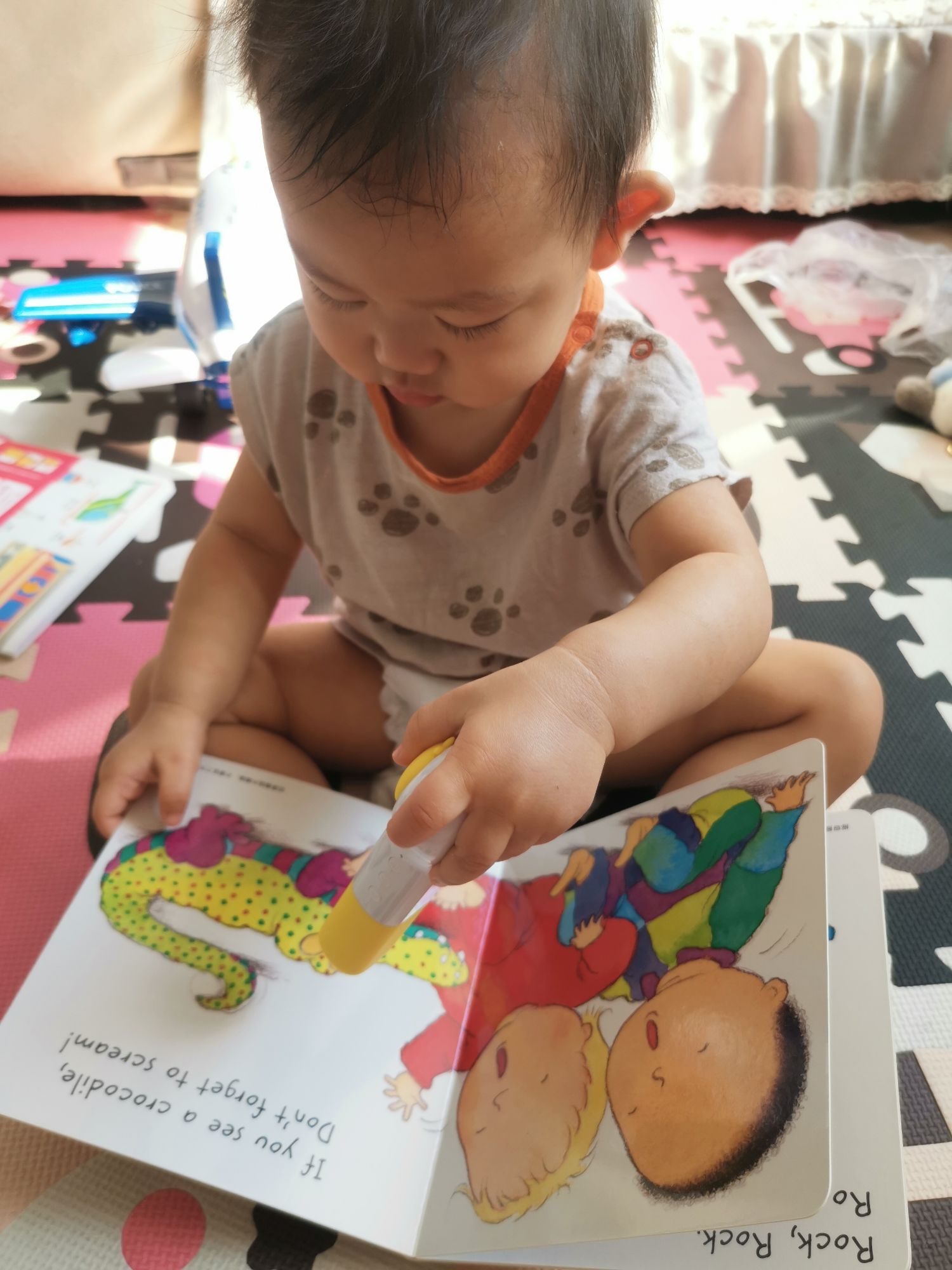 一边玩,一边听音乐,一边培养语感,还可以纠正妈妈的发音,书里还有翻译,简直不能更好了~