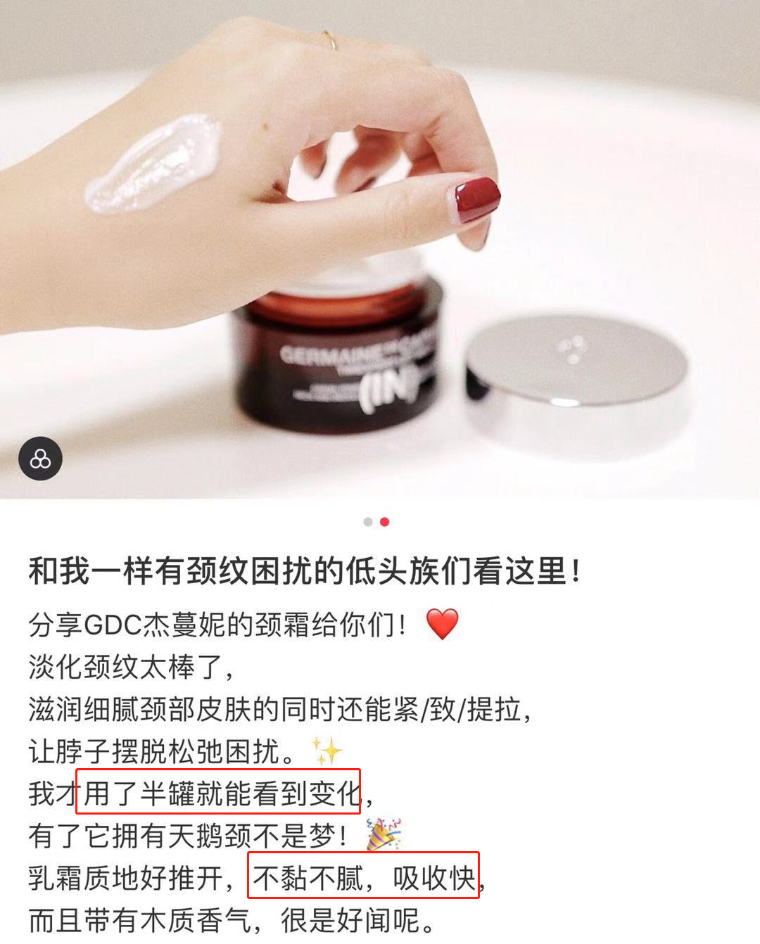 跟很多保湿型颈霜不一样,GDC是能抗老的胜肽型颈霜。