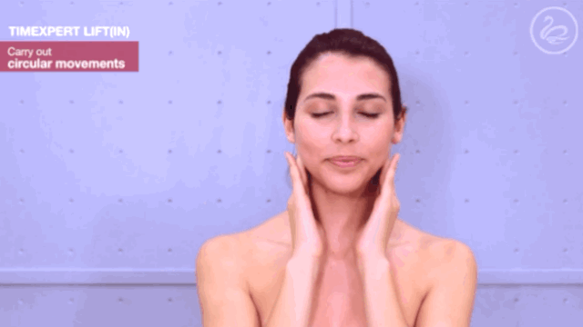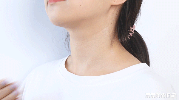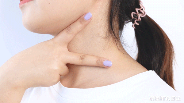 第三步:轻轻将颈纹撑开,并用手指在颈纹重灾区打圈按摩,增强颈霜的吸收。