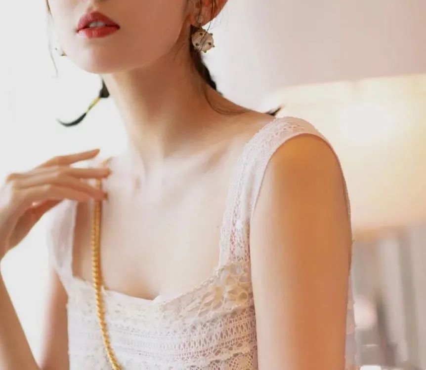 白皙无纹路的肌肤,配上玲珑精致的锁骨,优雅、迷人又女人味尽显。