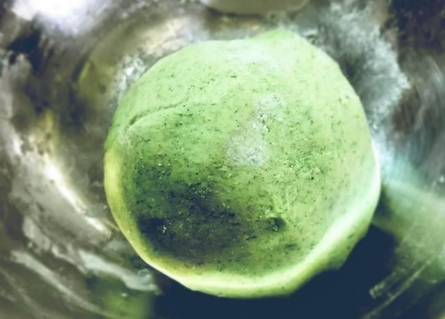 1、我用大麦青汁粉(麦子的嫩叶加工)代替了艾蒿嫩叶,在颜色上没有太大变化,口味上更为清香,也符合东北人的口味。