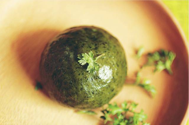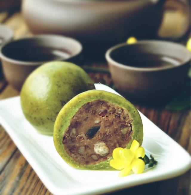 青团油绿如玉,糯韧绵软、清香扑鼻,肥而不腴,带有清淡艾草香气,香糯可口,多以艾蒿嫩叶和糯米粉捣制再以豆沙为馅而成。