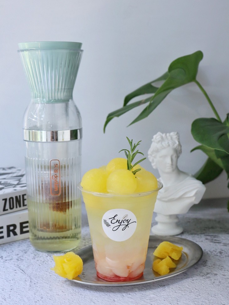 5.再放入菠萝冰球(提前用菠萝汁冻成冰球)