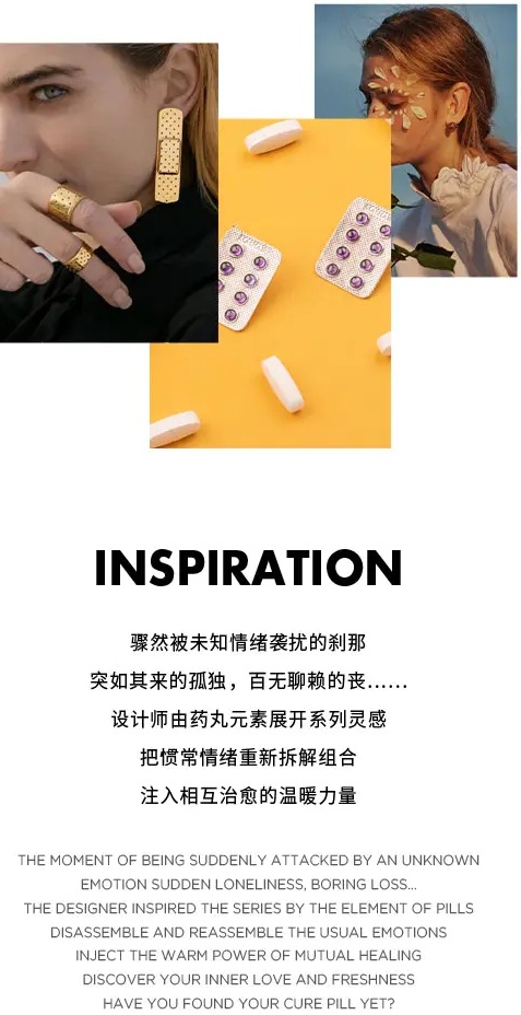 小伙伴们,咱们的新品——治愈药丸系列来啦!本次新品设计师从药丸元素展开系列灵感,为时尚设计注入了治愈般的温暖力量!快来看看有没有一颗药丸能够治愈你的内心吧!