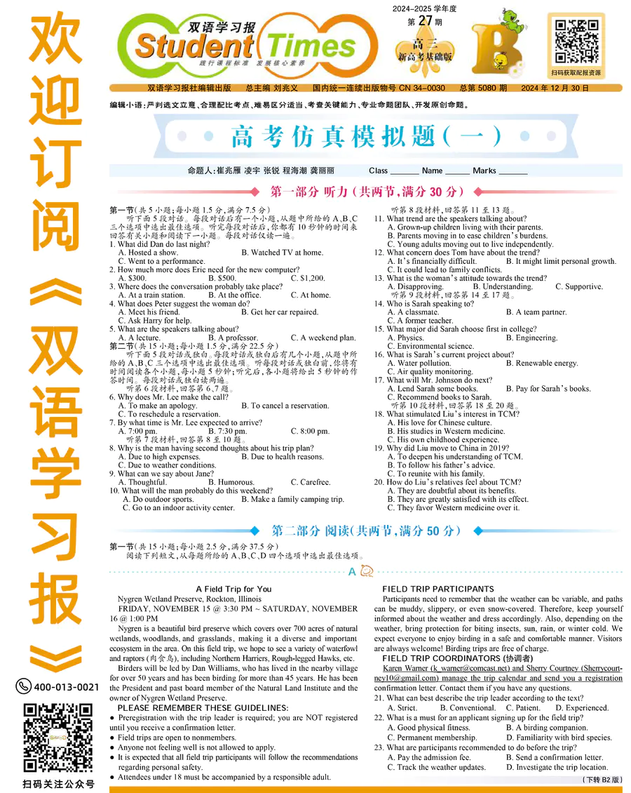 高中英语样报 高三 新高考基础版 第27期