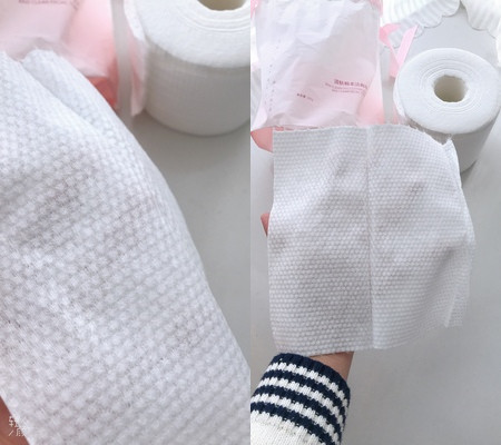 仔细看一下发现洗脸巾是双层珍珠纹的