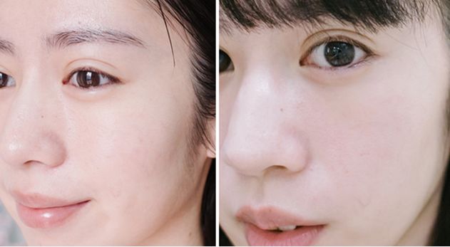 ▲左图:使用前,皮肤有清晰的晒后泛红小点