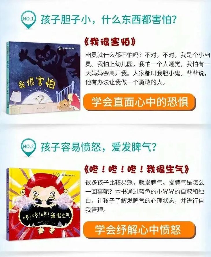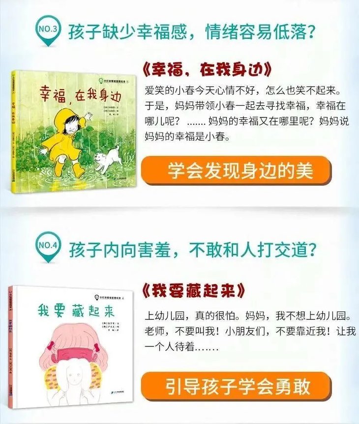 在孩子性格成长的关键期,情绪管理绘本可以帮助孩子建立良好的性格和习惯,因为绘本中每一个故事都有它的教育意义,可以让孩子在故事中感受不同情绪,感受情绪的来源,以及情绪转变的过程。