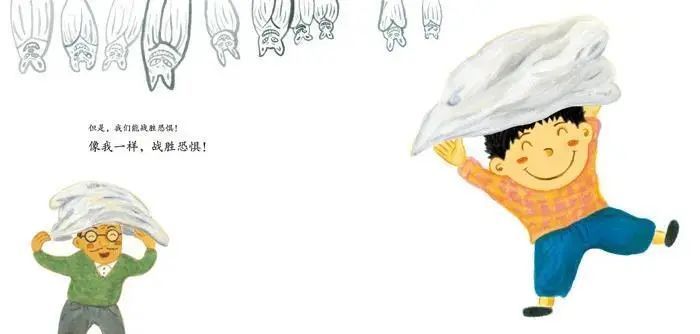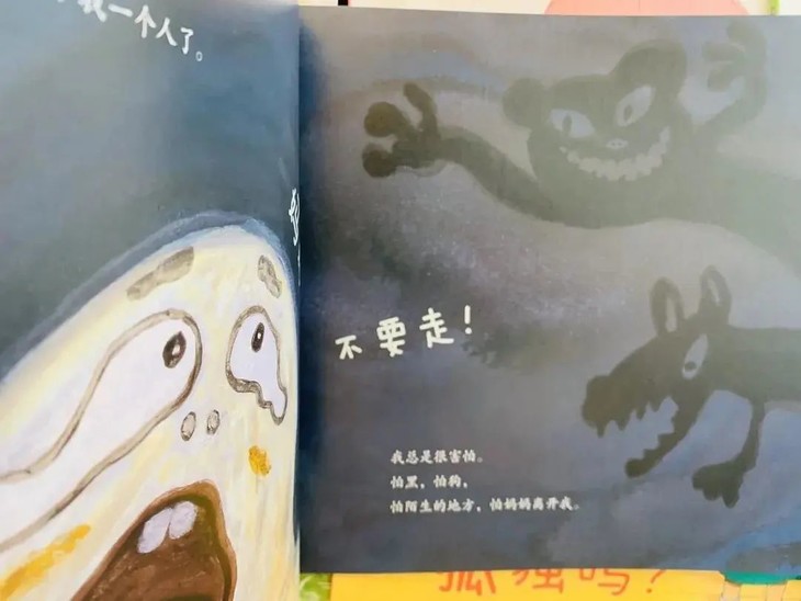但在故事中,孩子们却能随着画面,尽情地宣泄自己心中的害怕,无论是害怕黑夜、害怕妈妈不在还是害怕小伙伴嘲笑自己,都是没关系的。