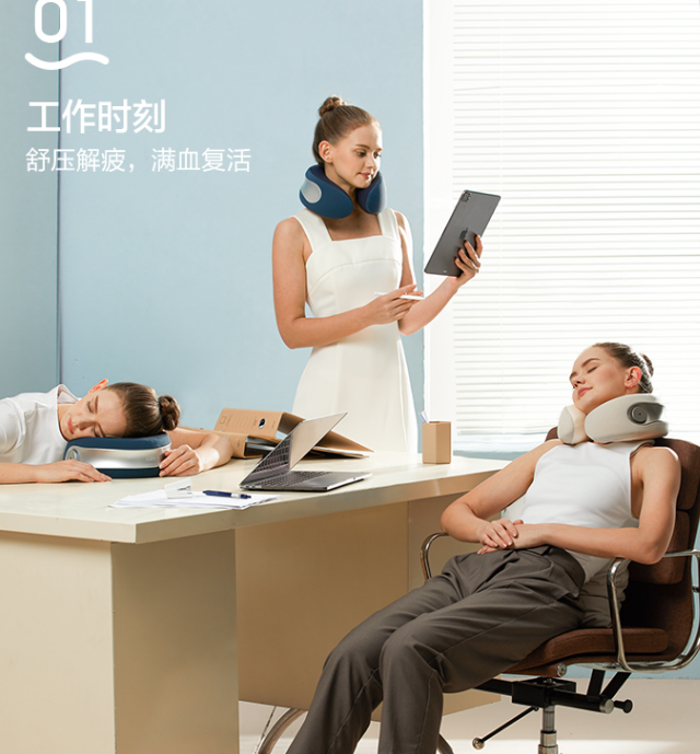 给空中飞人和久坐的办公一族,工作累了就拿出来按个15分钟,整个人都精神起来。还能做午睡颈枕,舒服着呢!