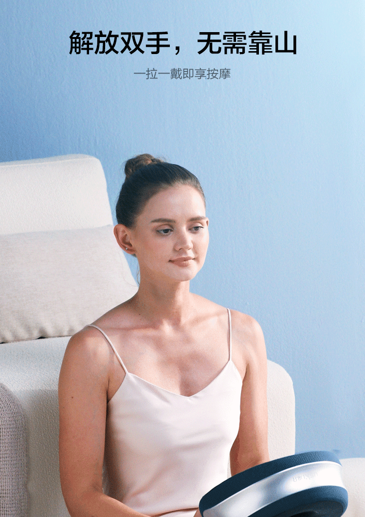 采用解放双手设计,只需要一拉一戴,就可以将按摩仪环绕颈部。