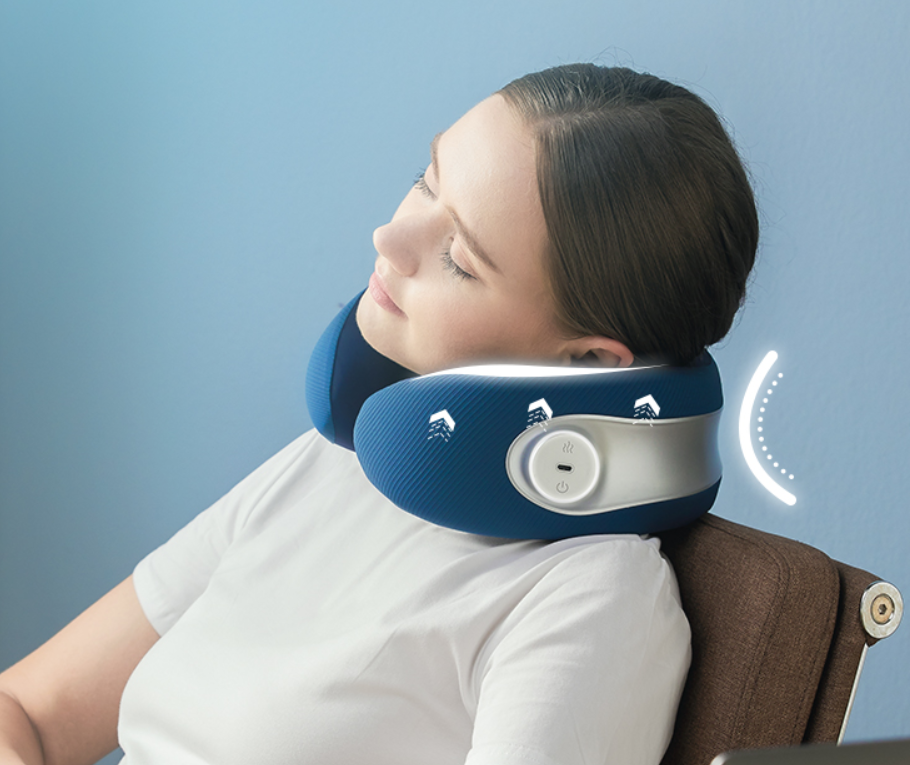 在设计上满足了颈部的需求,贴合颈椎曲度,保证使用按摩仪的时候颈部的承托能达到充分放松的效果。
