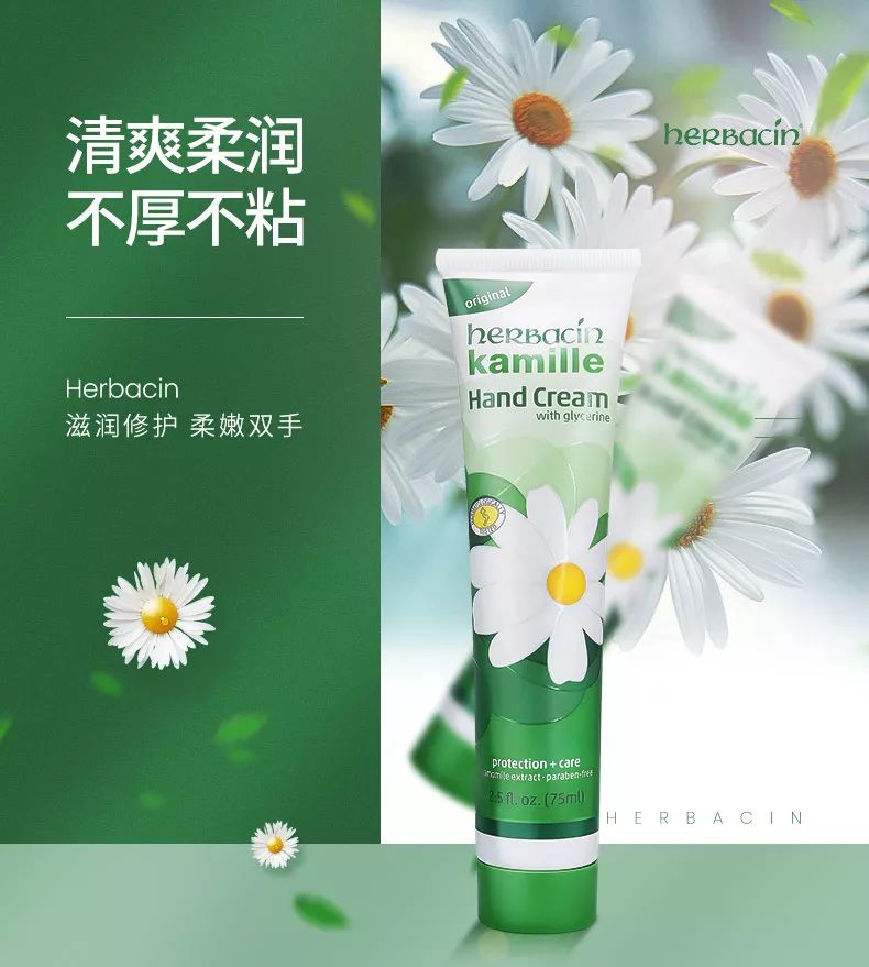 看图的时候,就觉得这支德国小甘菊护手霜,颜色搭配特别明目,走的是小清新路线。