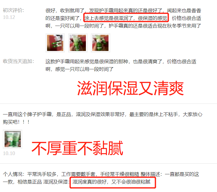 对于秋冬季节,最怕的就是厚重,但这款护手霜不同!质地非常的轻薄,容易抹开。