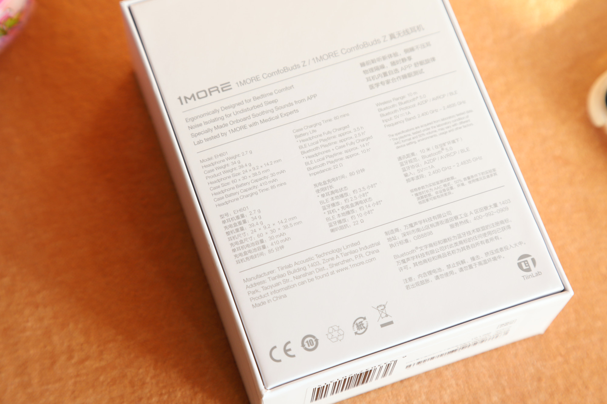 包装盒依旧是熟悉的1MORE风格,产品除了叫睡眠豆,其实全名是1MORE ComfoBuds Z睡眠豆。