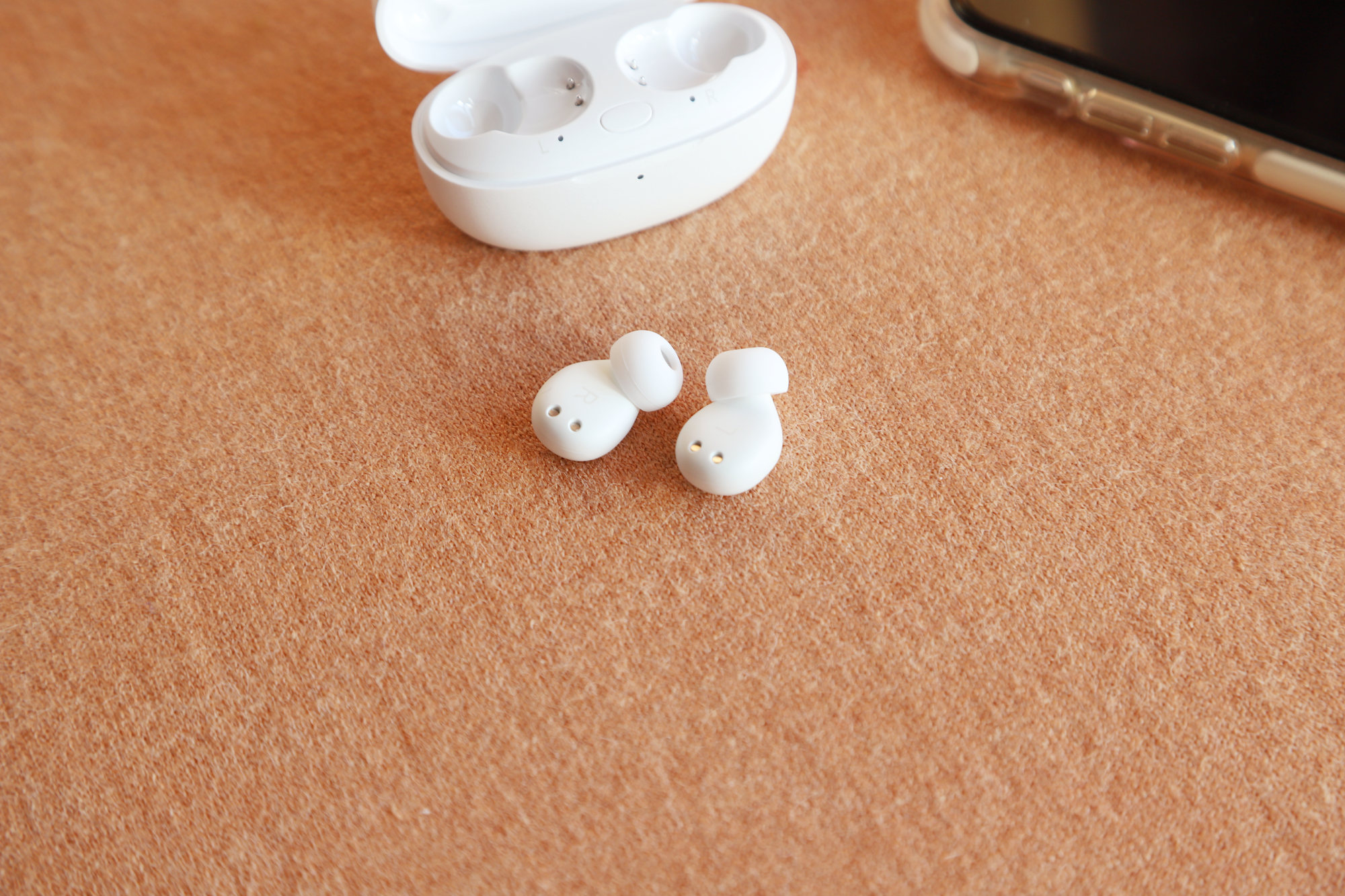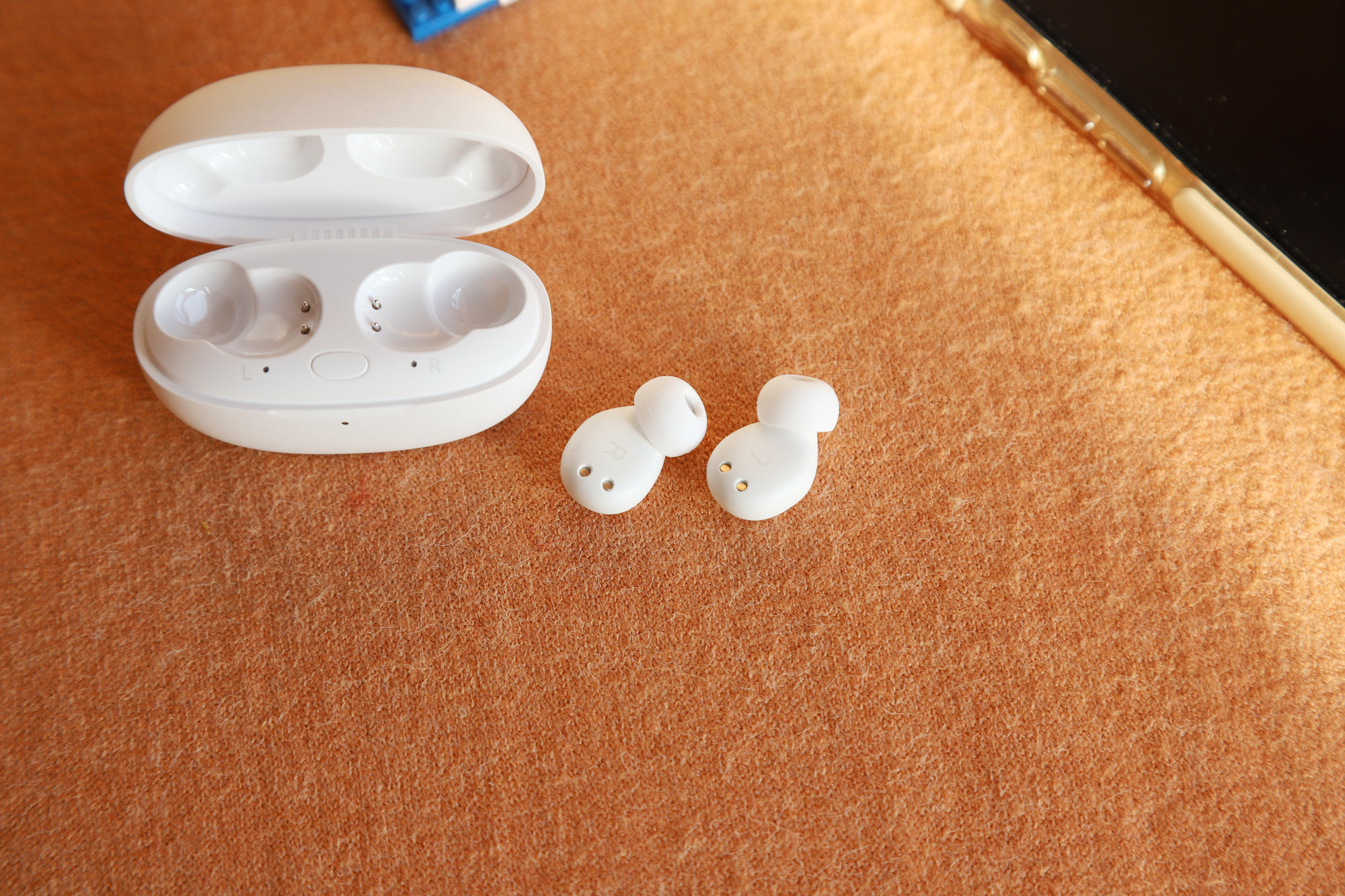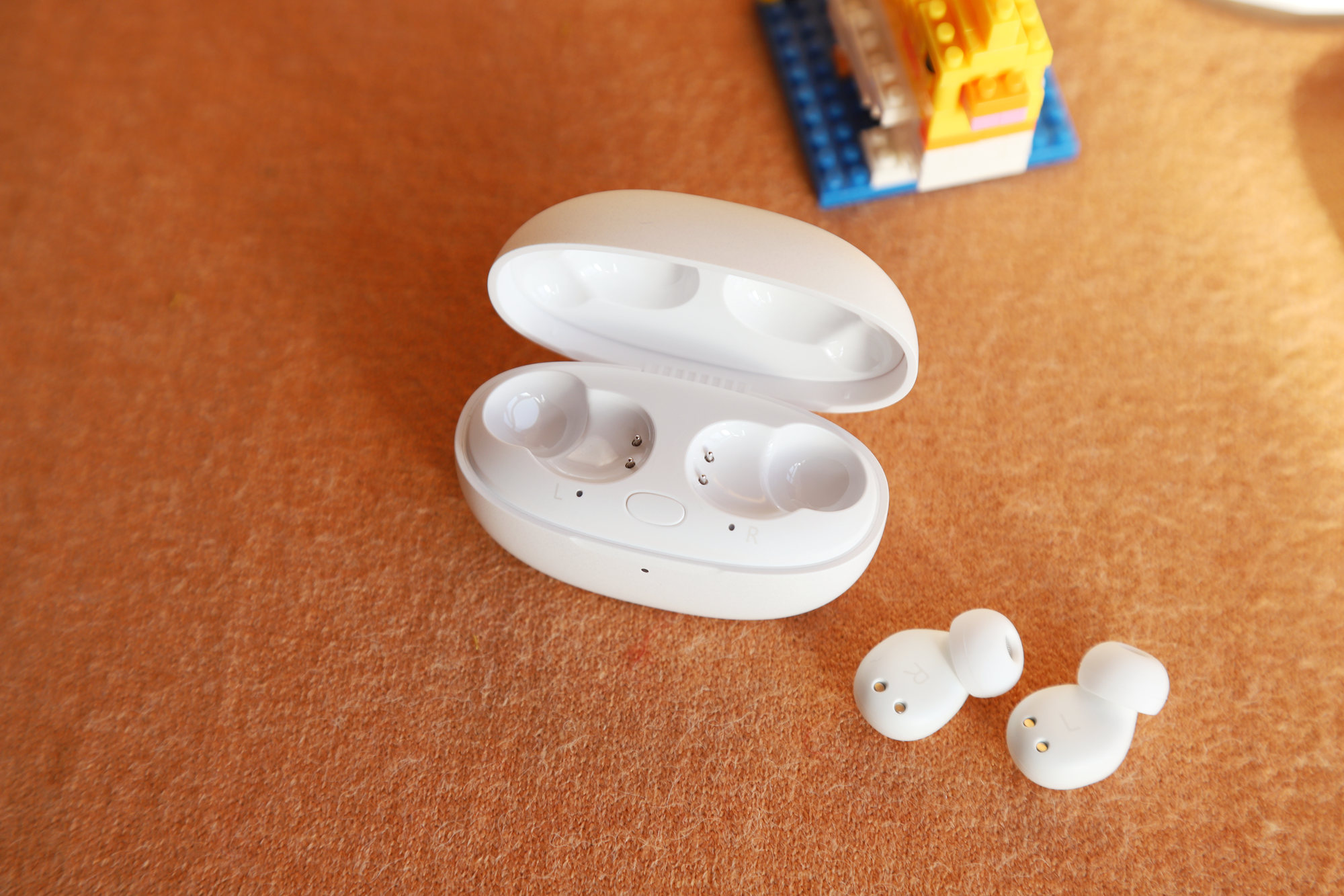 内侧有L和R标识,同时还有充电触点。