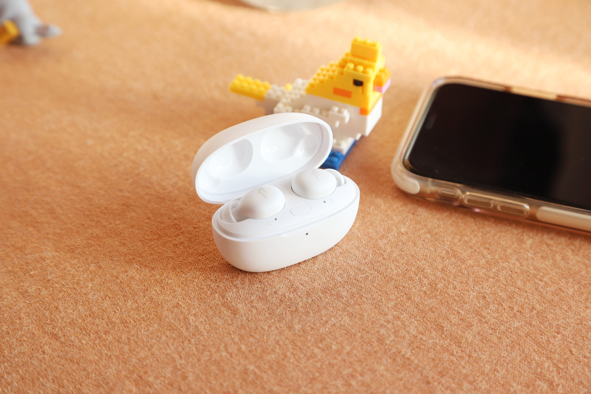 充电盒内部设计有多功能按键,L和R标识和指示灯。