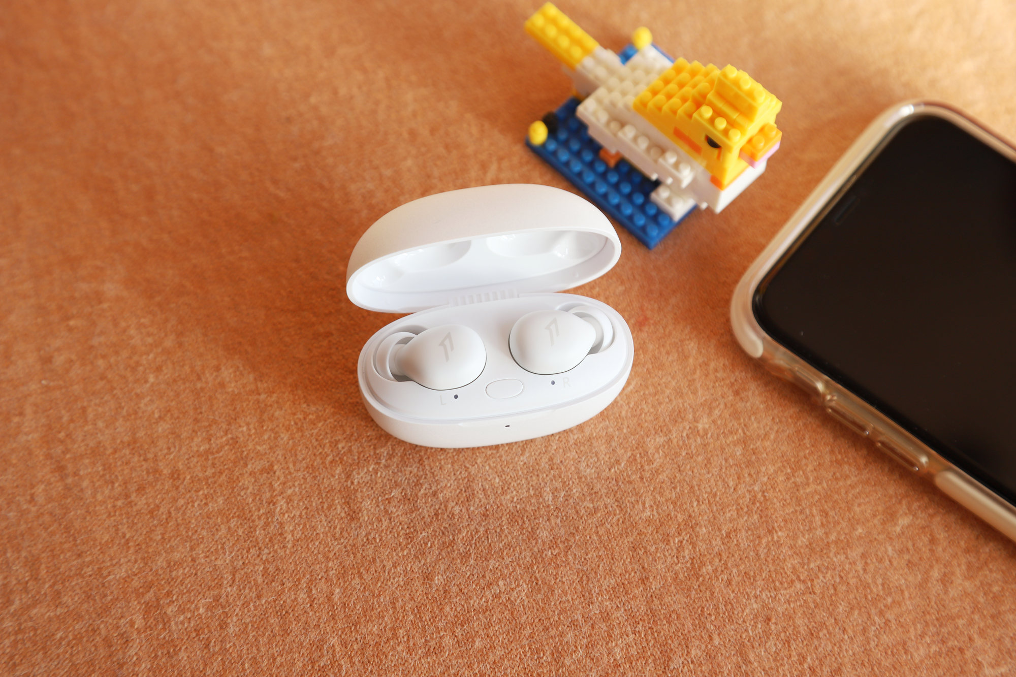 充电盒正面1MORE的LOGO标识。
