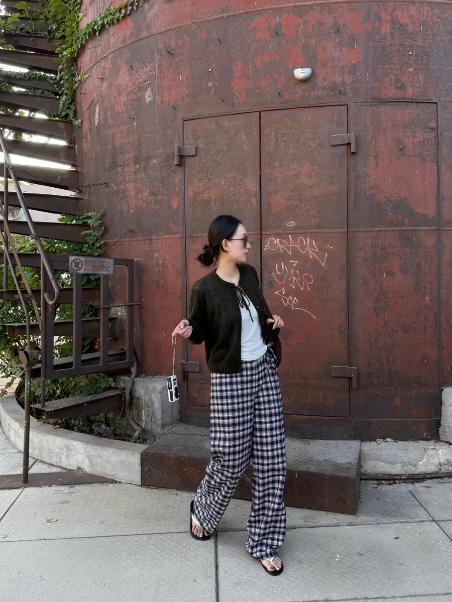 新品上身 | 格纹裤搭针织上衣,休闲温柔,周末出行超松弛💓