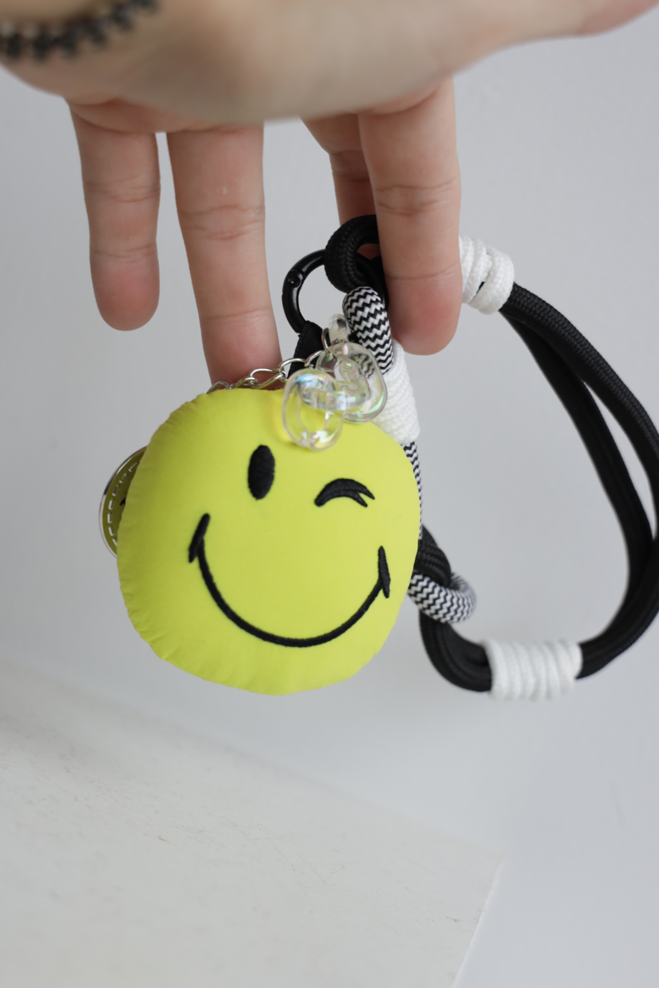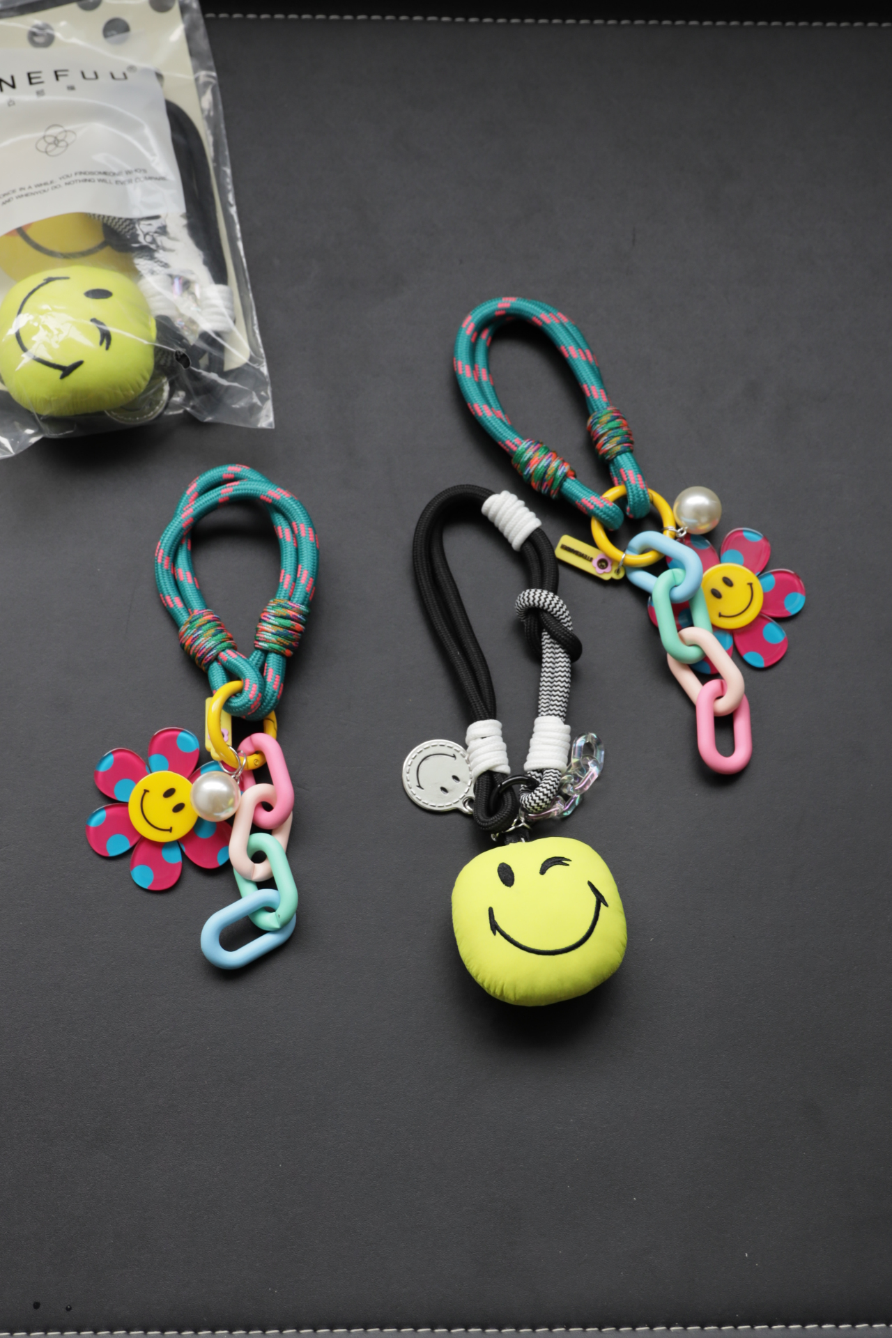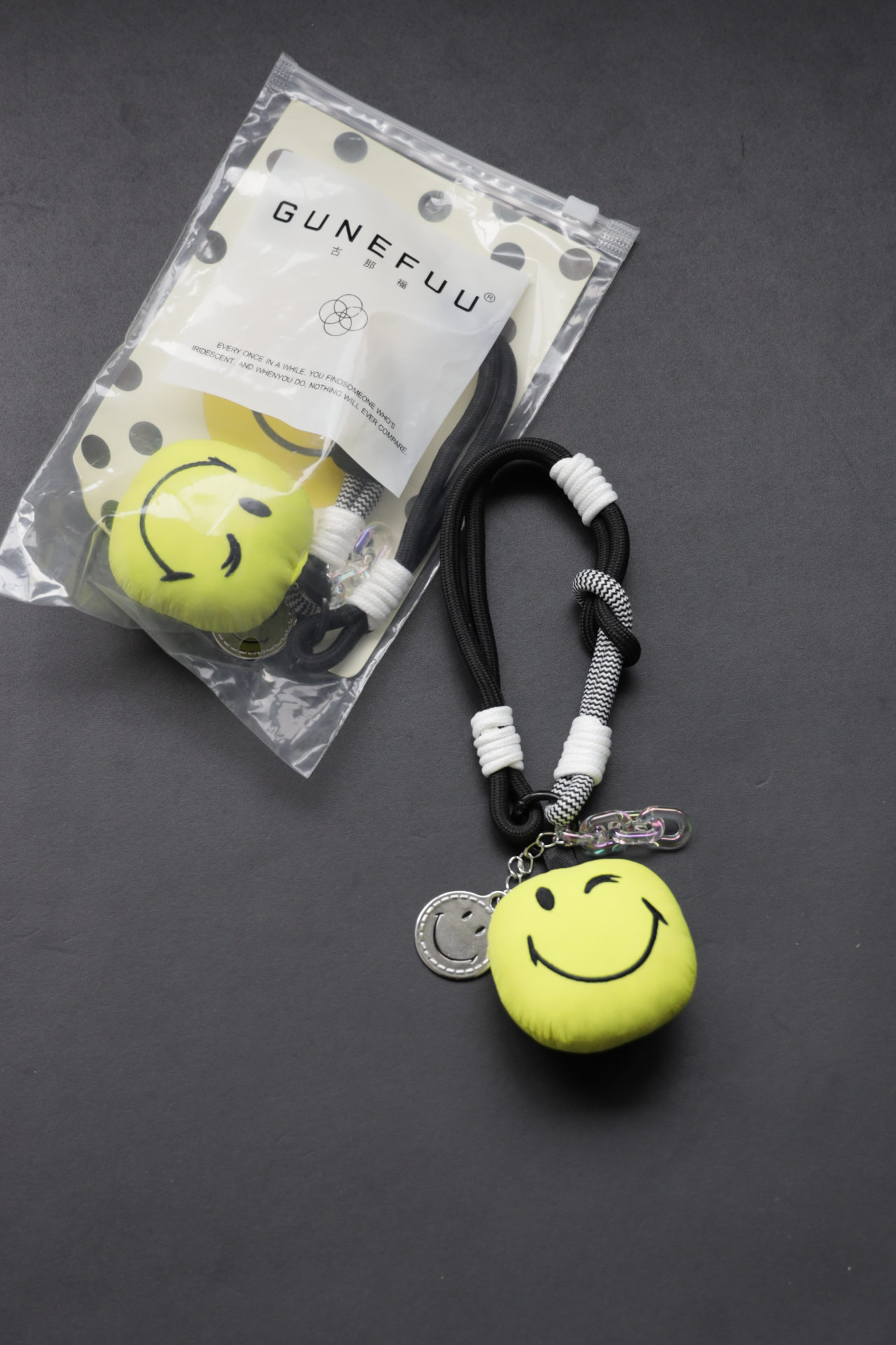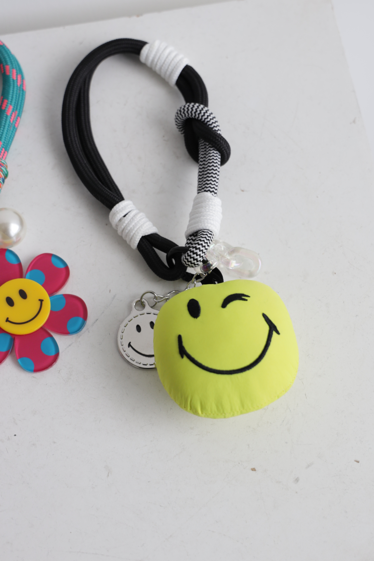 超萌黄色笑脸造型,搭配加粗条纹编织绳,做工精致!