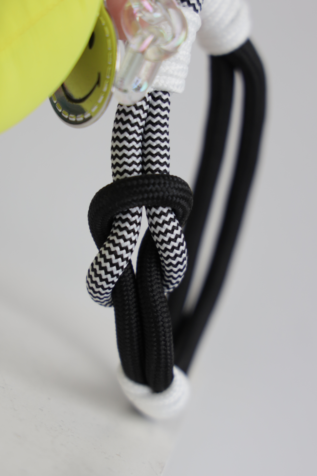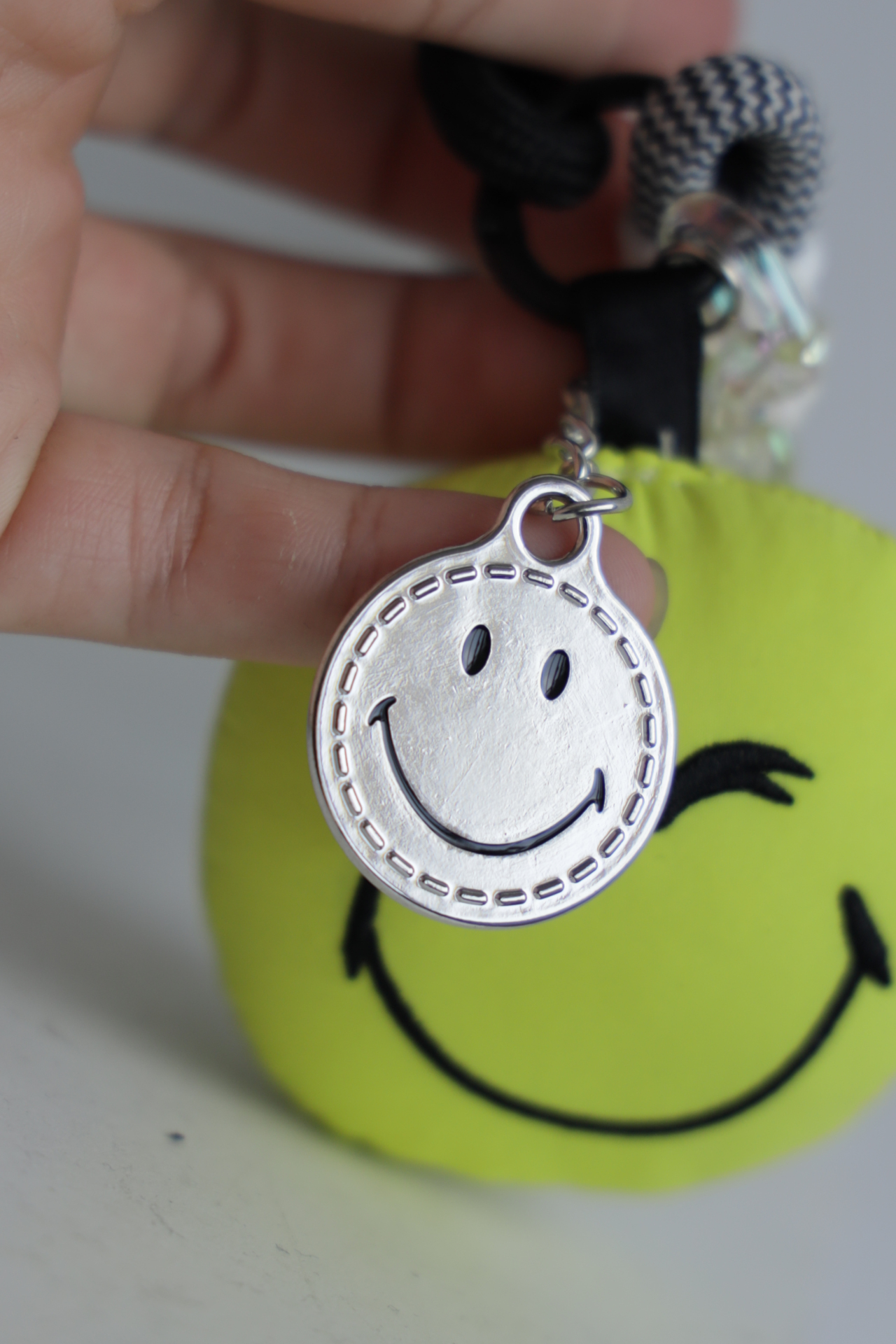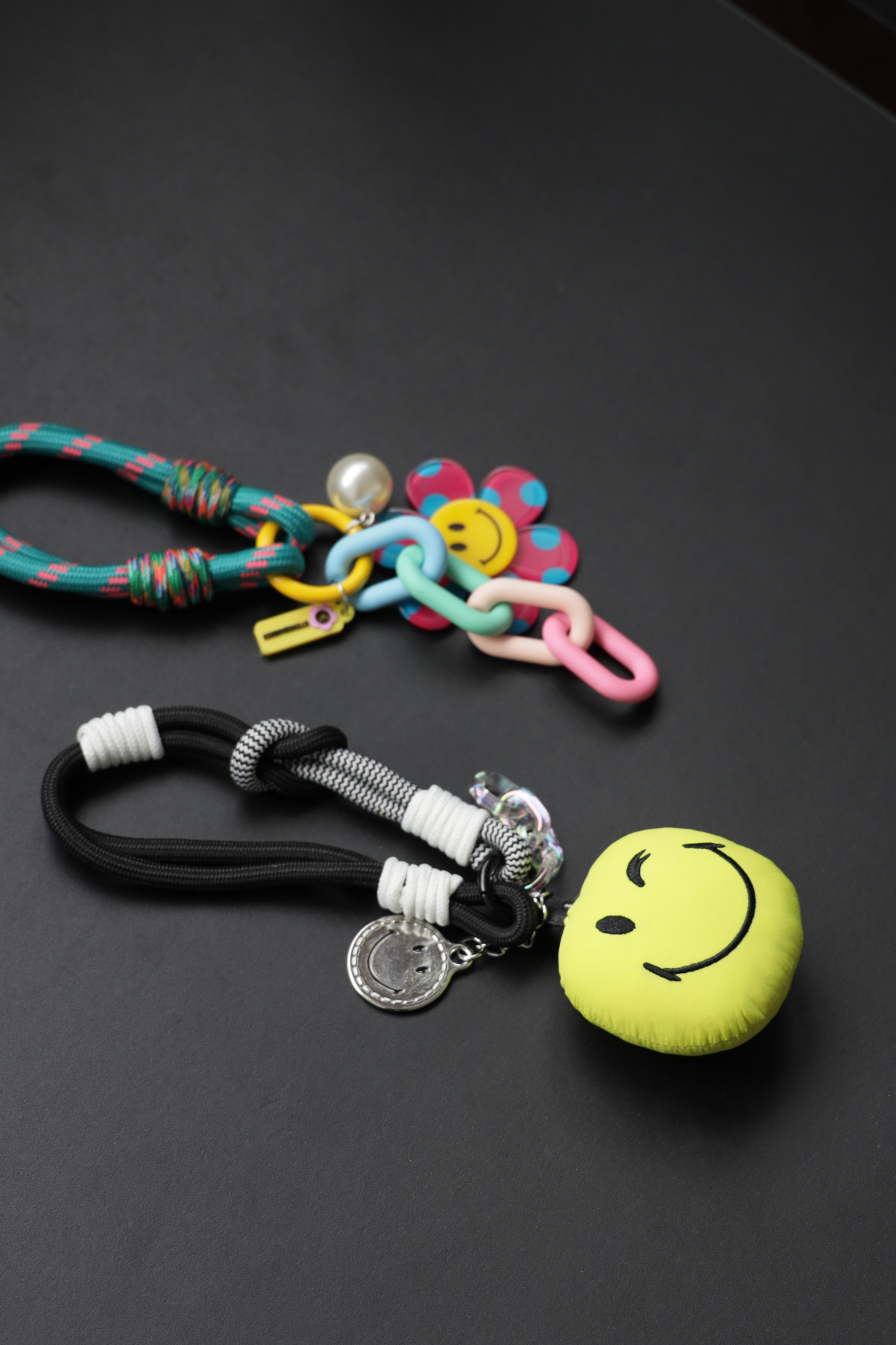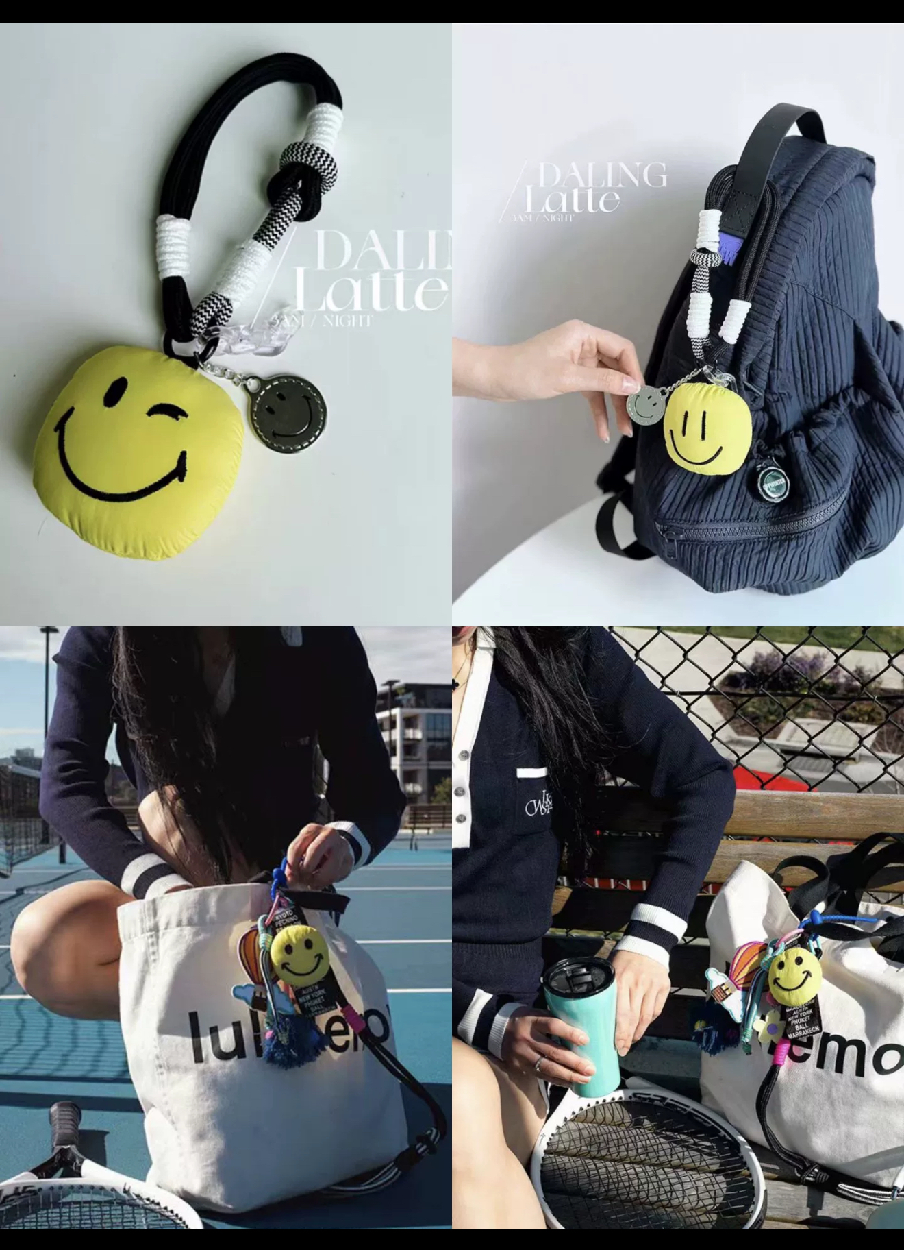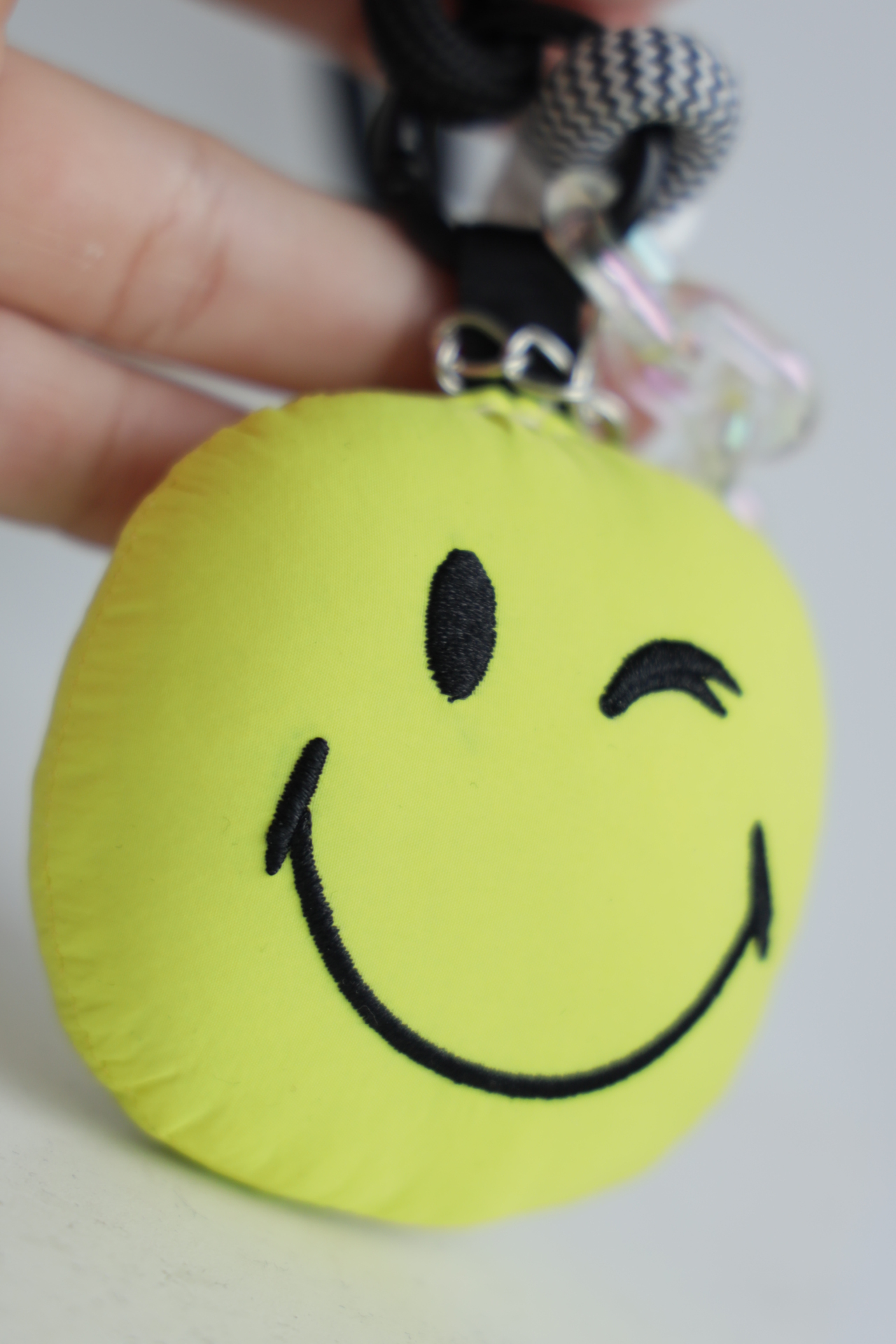 超萌黄色笑脸造型,搭配加粗条纹编织绳,做工精致!