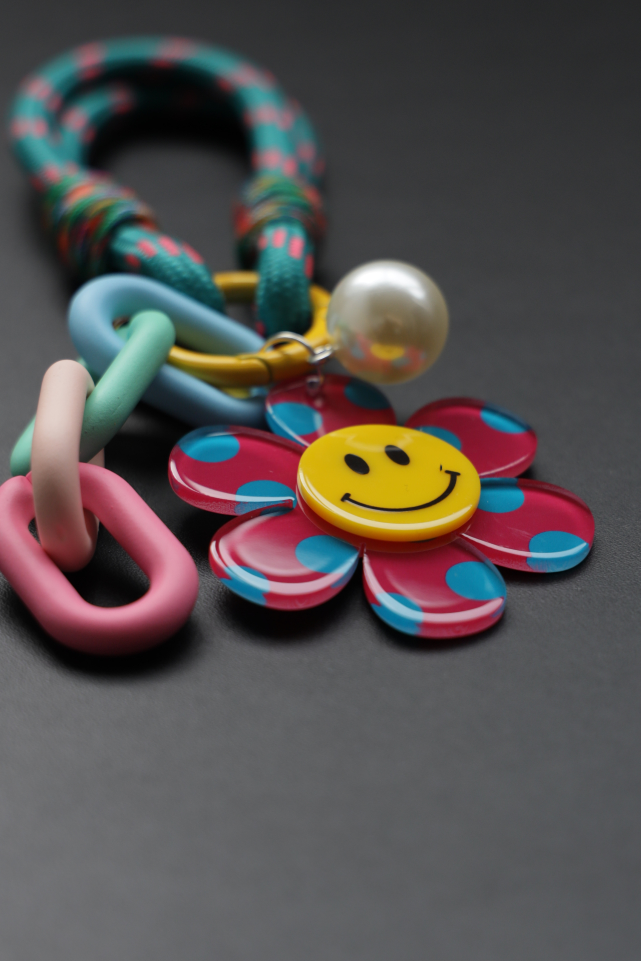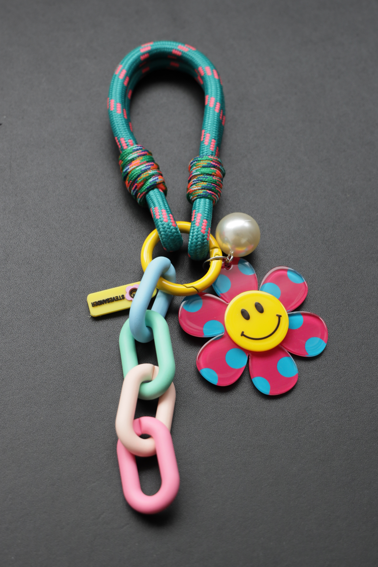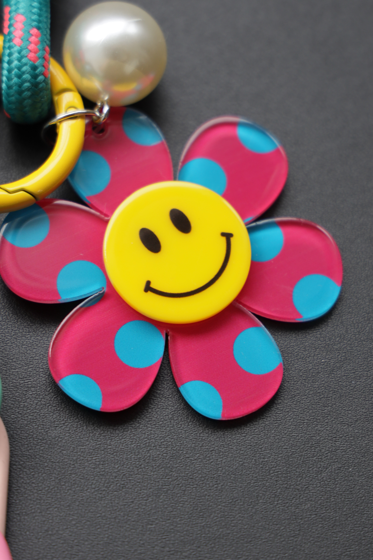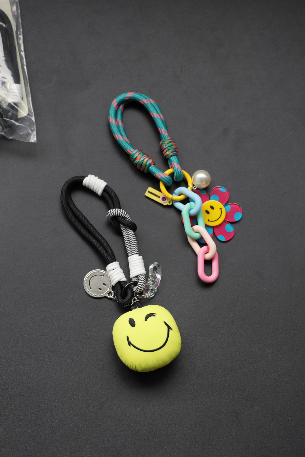 超萌黄色笑脸造型,搭配加粗条纹编织绳,做工精致!