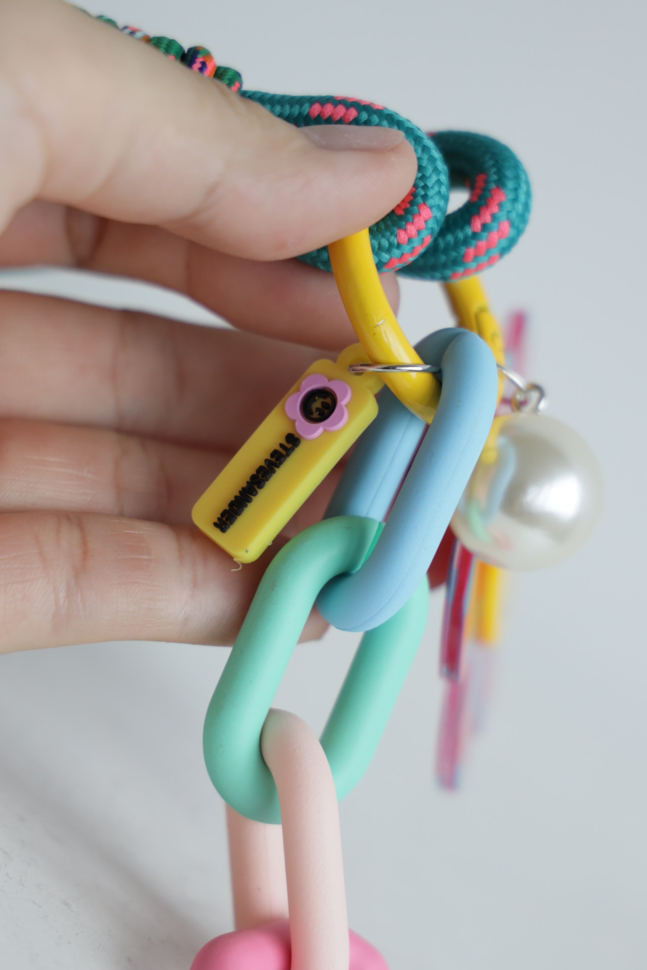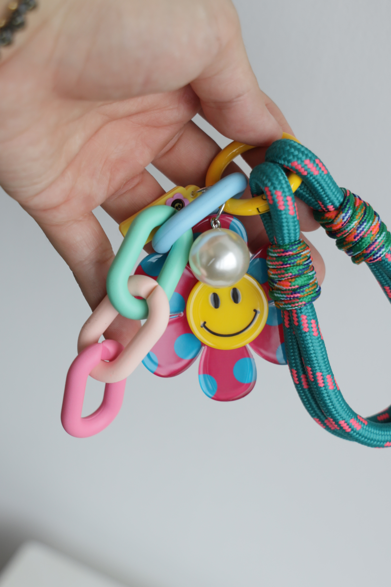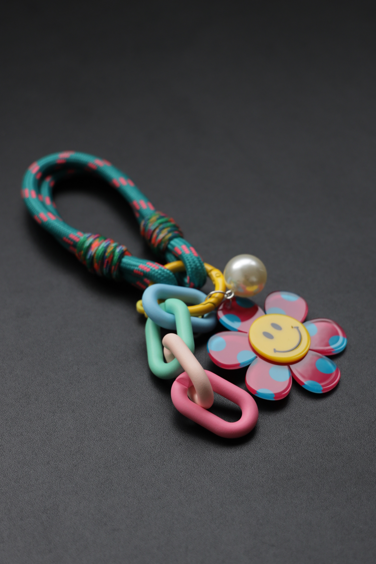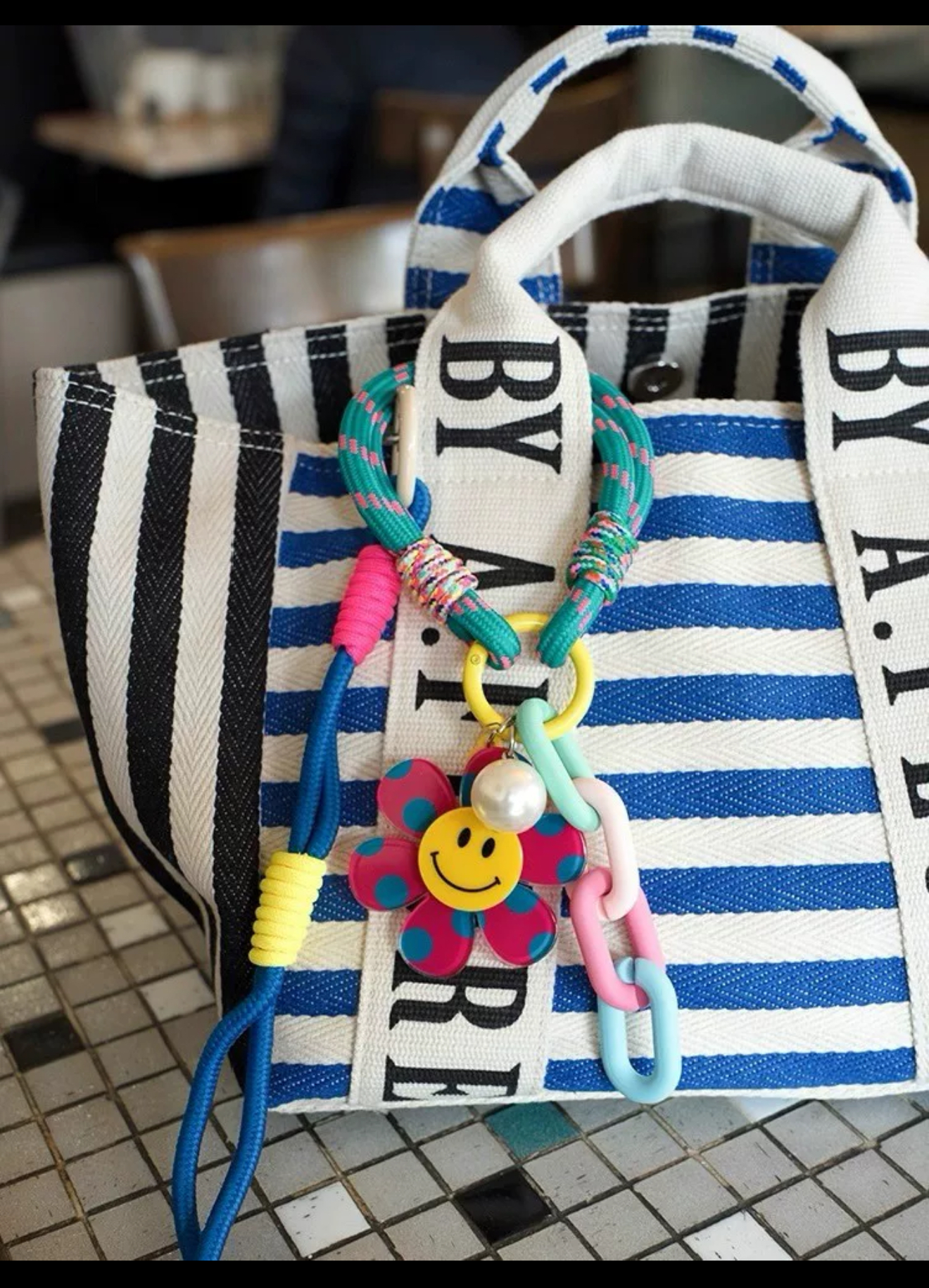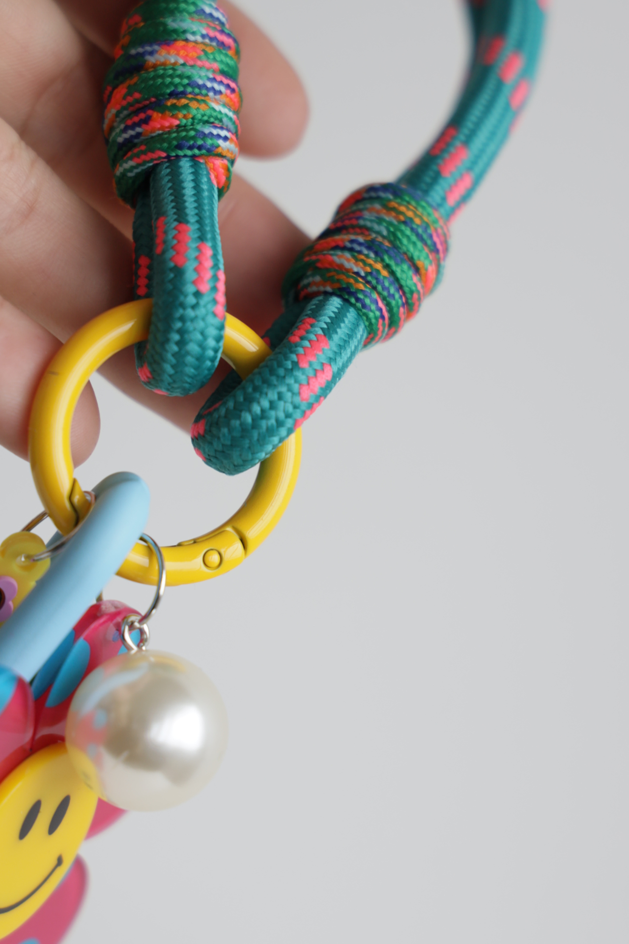 超萌黄色笑脸造型,搭配加粗条纹编织绳,做工精致!