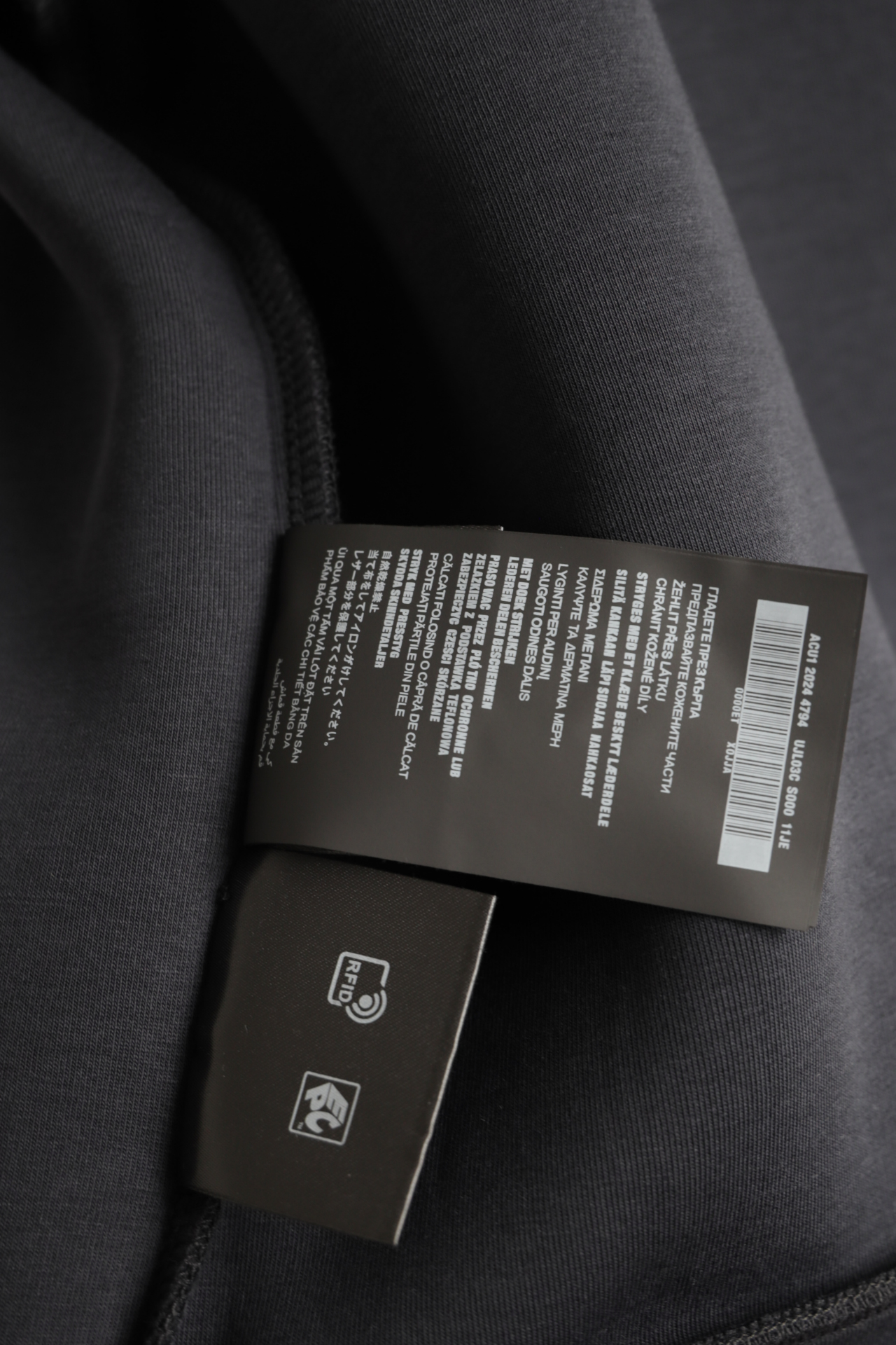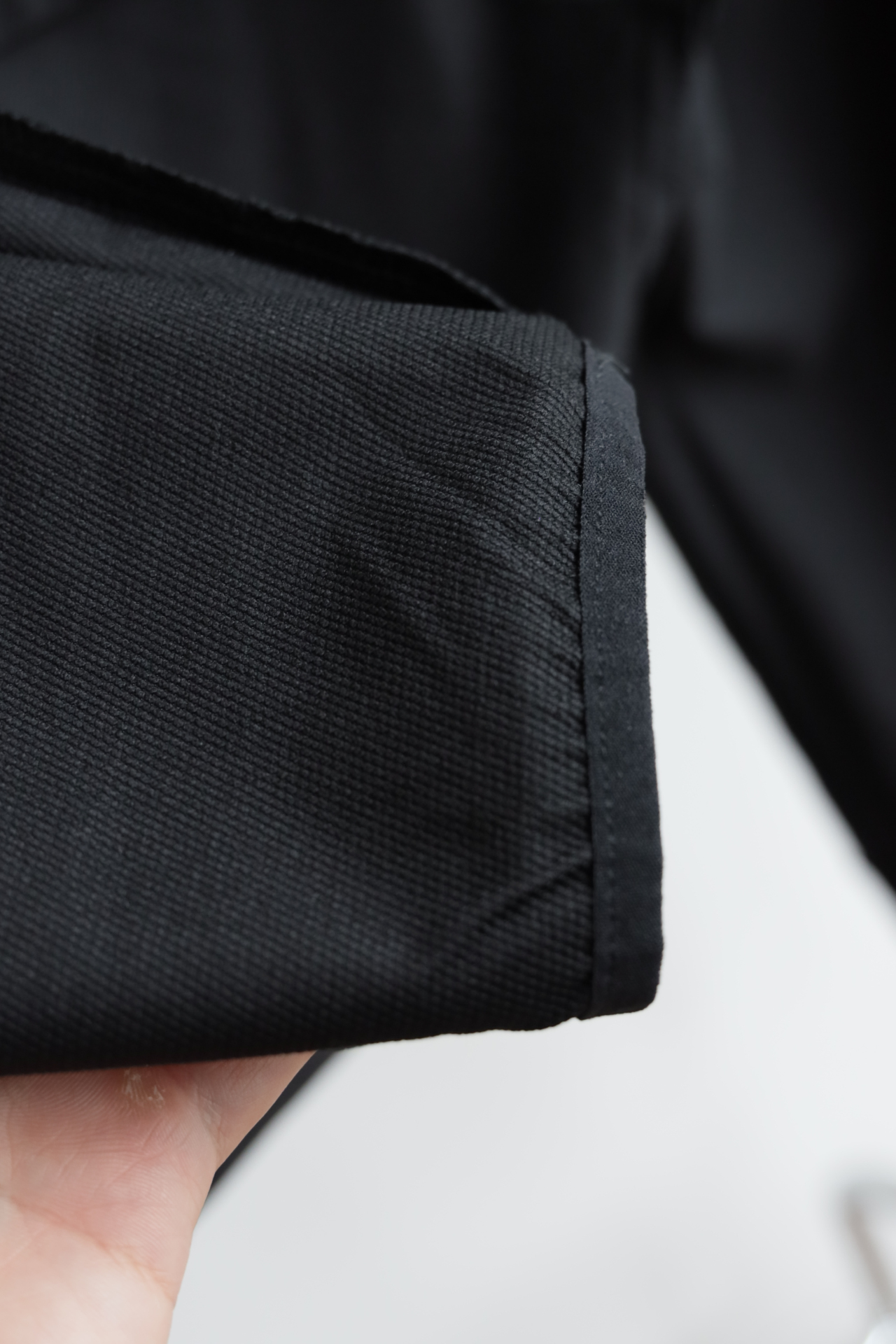 兜帽边缘、袖口、下摆拼接弹力橡筋的衔接点全部采用特种机做套结加固,牢固耐穿防撕裂