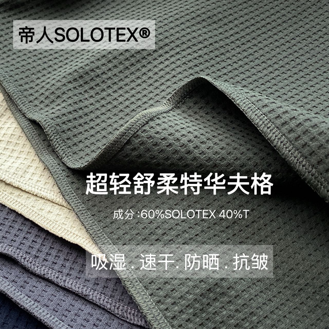 帝人SOLOTEX®——被誉为“纤维黑科技”的它,触感如棉柔软,自带吸湿速干+UPF防晒+抗皱免烫三重Buff: