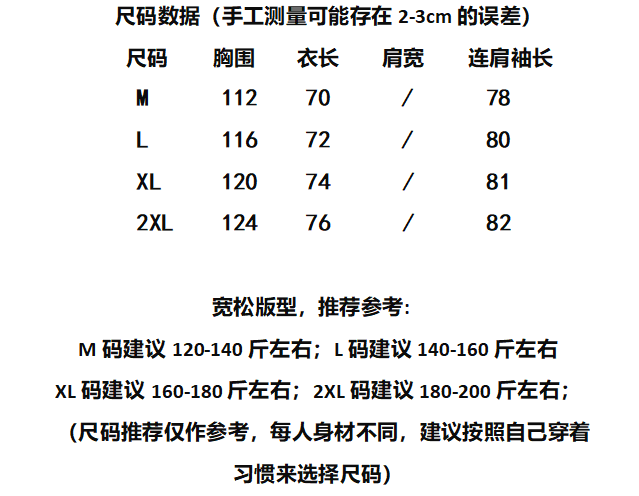 跟着体重推荐来就可以,喜欢宽松效果的大一码照样穿