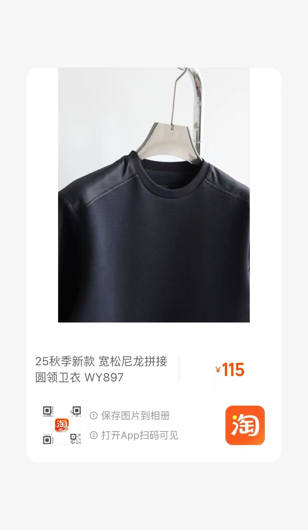 P.R.D 秋季新款 宽松尼龙拼接 圆领卫衣