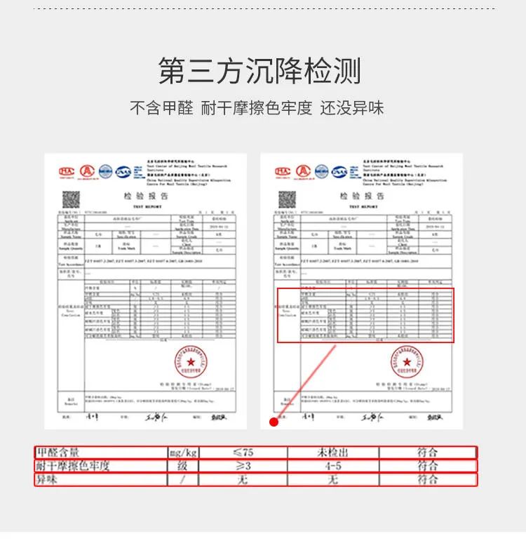 A类婴幼儿标准可以放心使用 ,再实际质检中我们坚持,不添加甲醛/荧光剂/致癌芳香胺, 始终保持 “未检出”的高标准