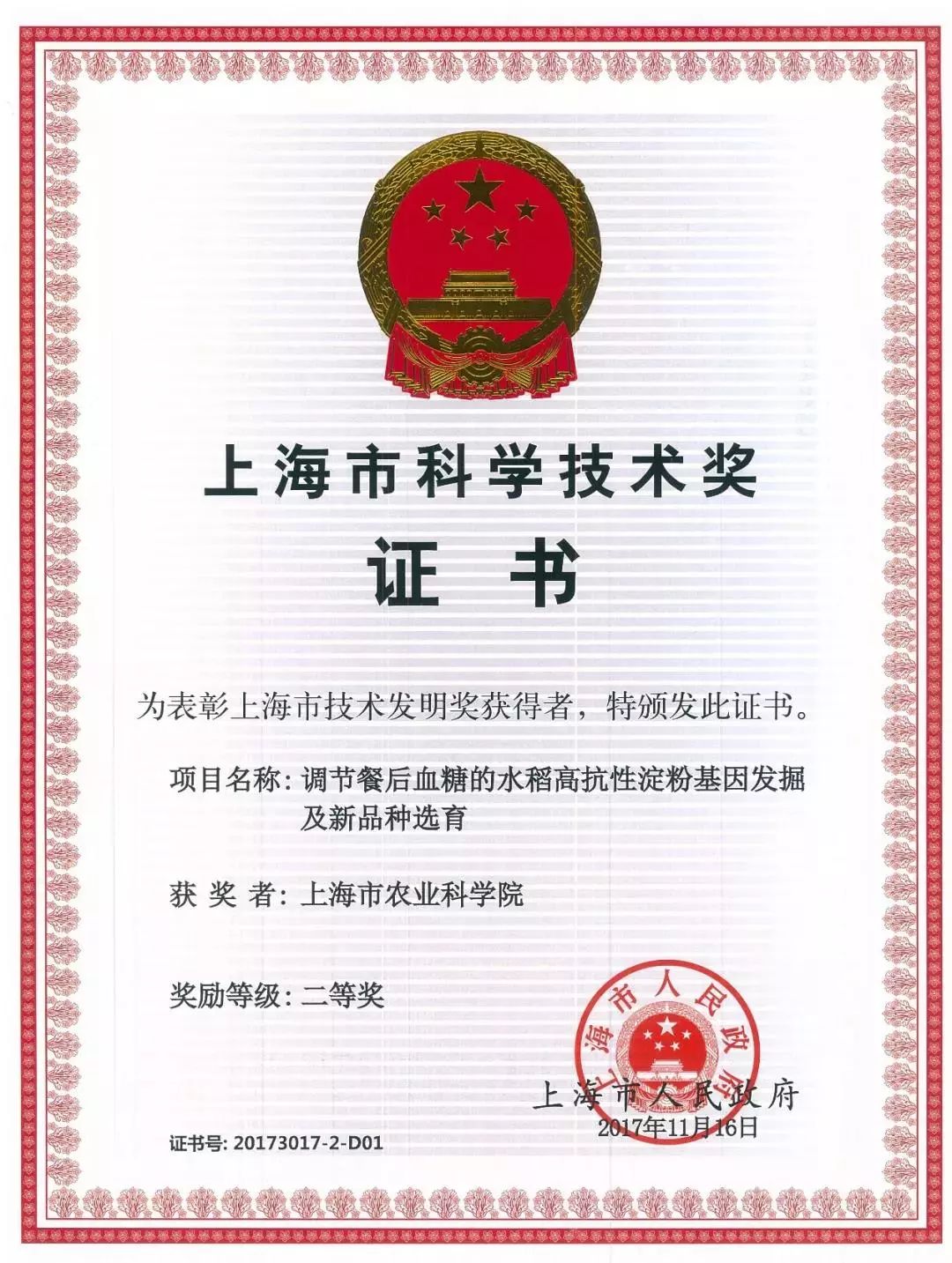 这么说并不是空穴来风哦~ 高抗性淀粉大米数年来一直是各大农科院校研究的主流方向,并取得了可喜的研究成果,其中上海农科院荣获上海市2017年度科学技术发明奖二等奖。