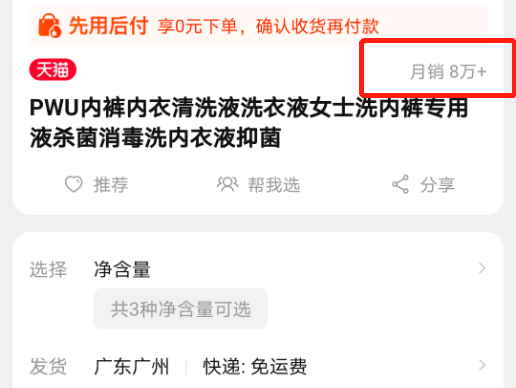 其实,早在我发现这款宝藏内衣洗衣液之前,它就已经卖得很火爆了。光是天猫的月销售就有8万+,全平台的月销更是超10万。