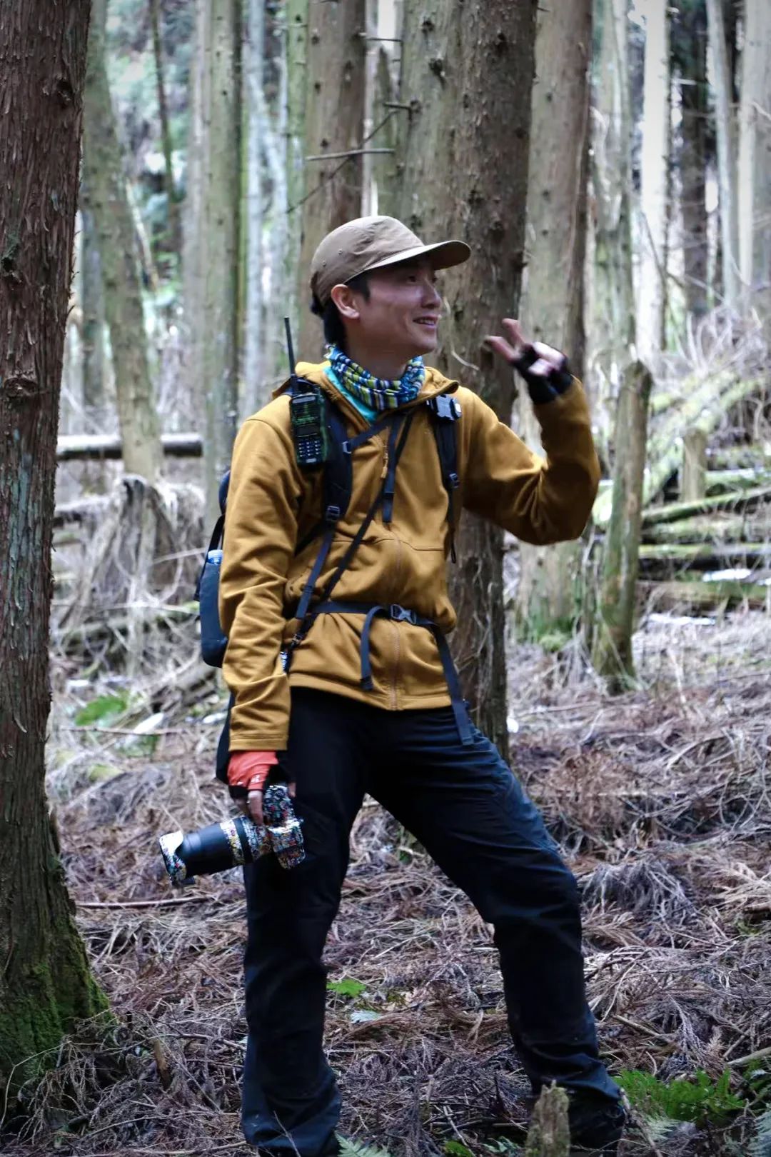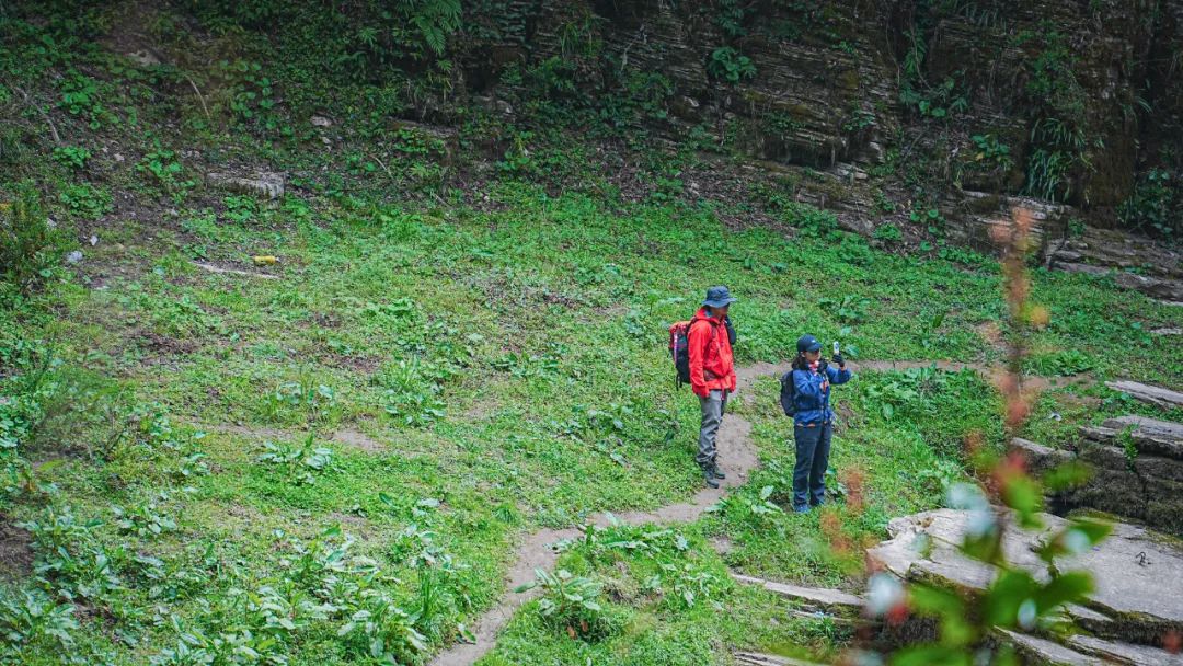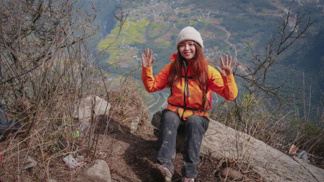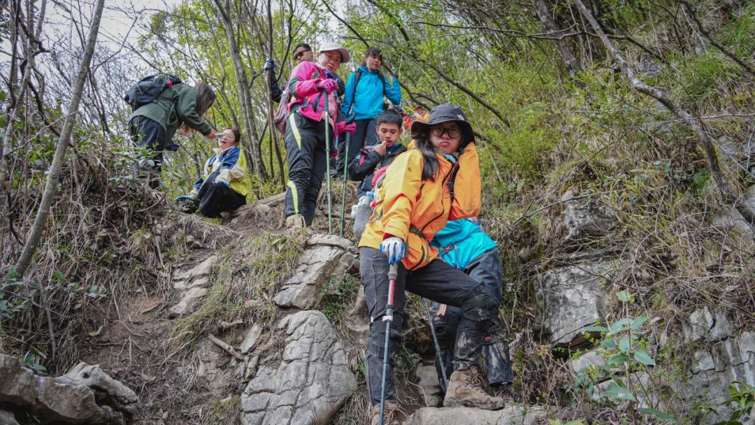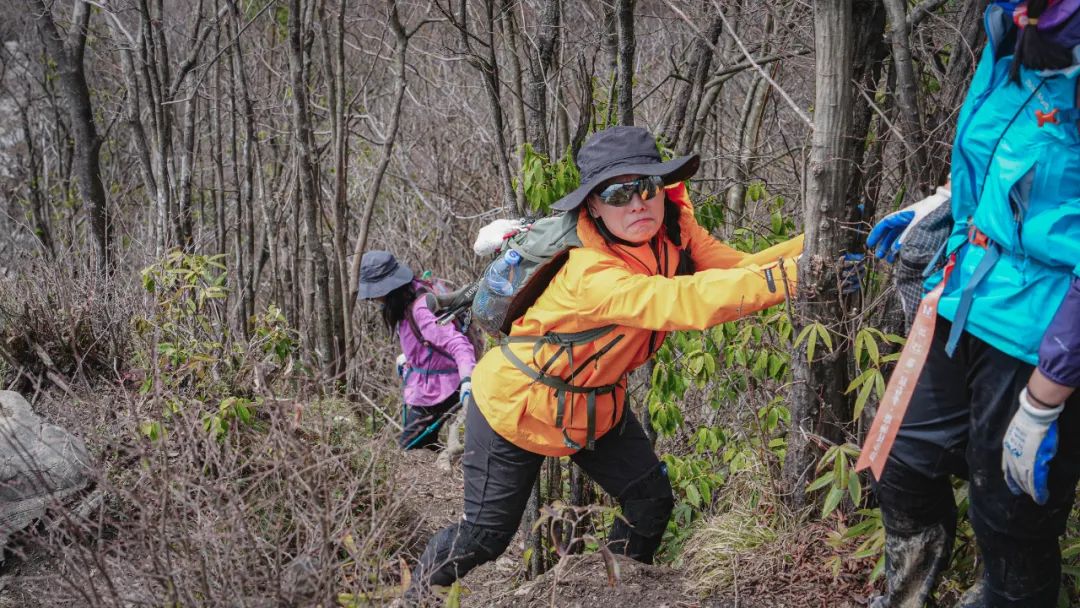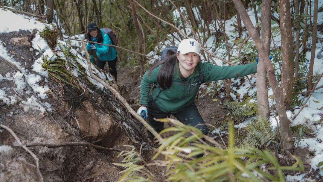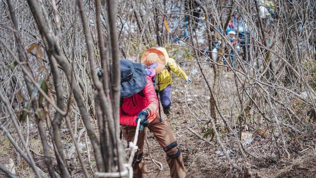 因为一路陡峭泥滑,大家都带好了手套,见树抓树,遇石握石。正走着,我忽然发现身后一位朋友竟然没戴手套。倒不是她身手有多轻巧、不需要开启四驱模式,只见她直接徒手抓住土地,奋力地往上攀爬。