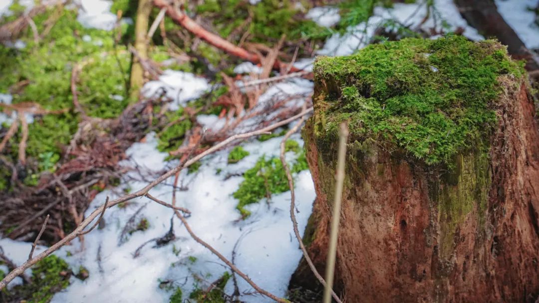 从大山顶下山,竟然路过一片高高的云杉密林。阳光从树的缝隙中洒进来,青苔从石头的缝隙中长出来。如果说人生是苦,那走在这样美妙的地方,似是梦幻。