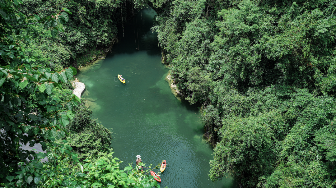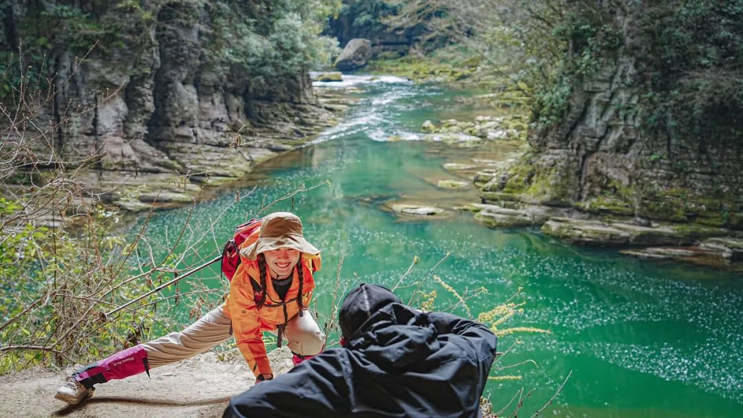 在清江古河床,我们跳进巨石河床、跨过暗河清湖。