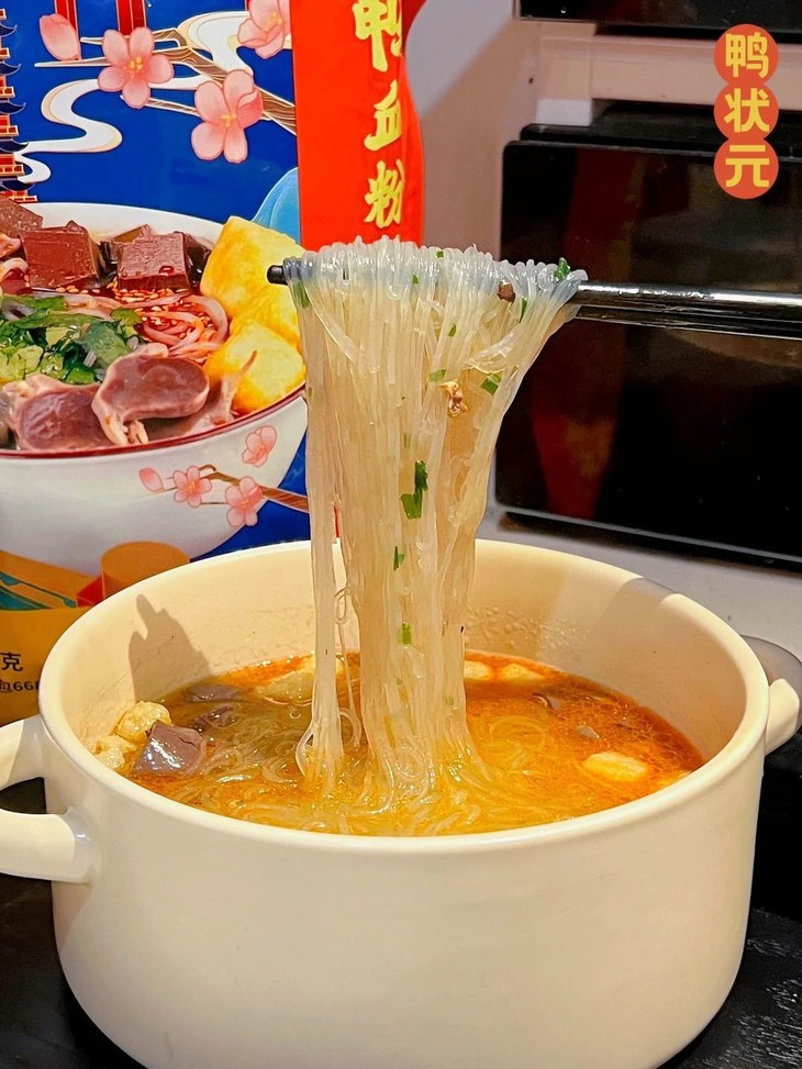 精挑红薯粉丝~汤底香醇味道浓郁💥鸭血鸭肝肠滑嫩鲜香~丰富配料分量超足!