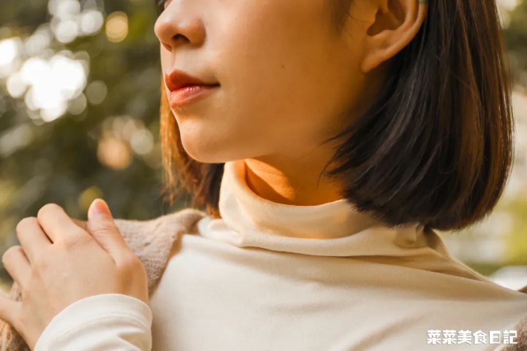 堆堆领的话更容易打造慵懒舒适感,领口看起来比较松垮。